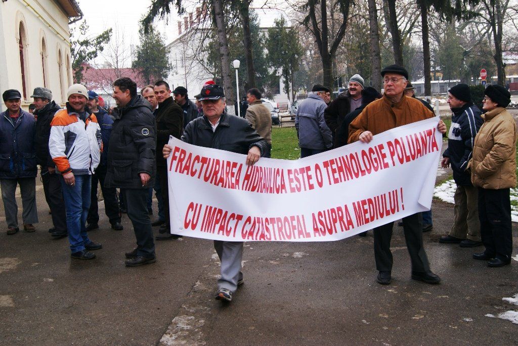 ARAD. Zeci de persoane au protestat, sâmbătă, la Arad, împotriva exploatării gazelor de şist prin fracturare hidraulică. Protestatarii, veniţi din toată ţara, au scandat în Piaţa Avram Iancu mesaje împotriva exploatării gazelor de şist.