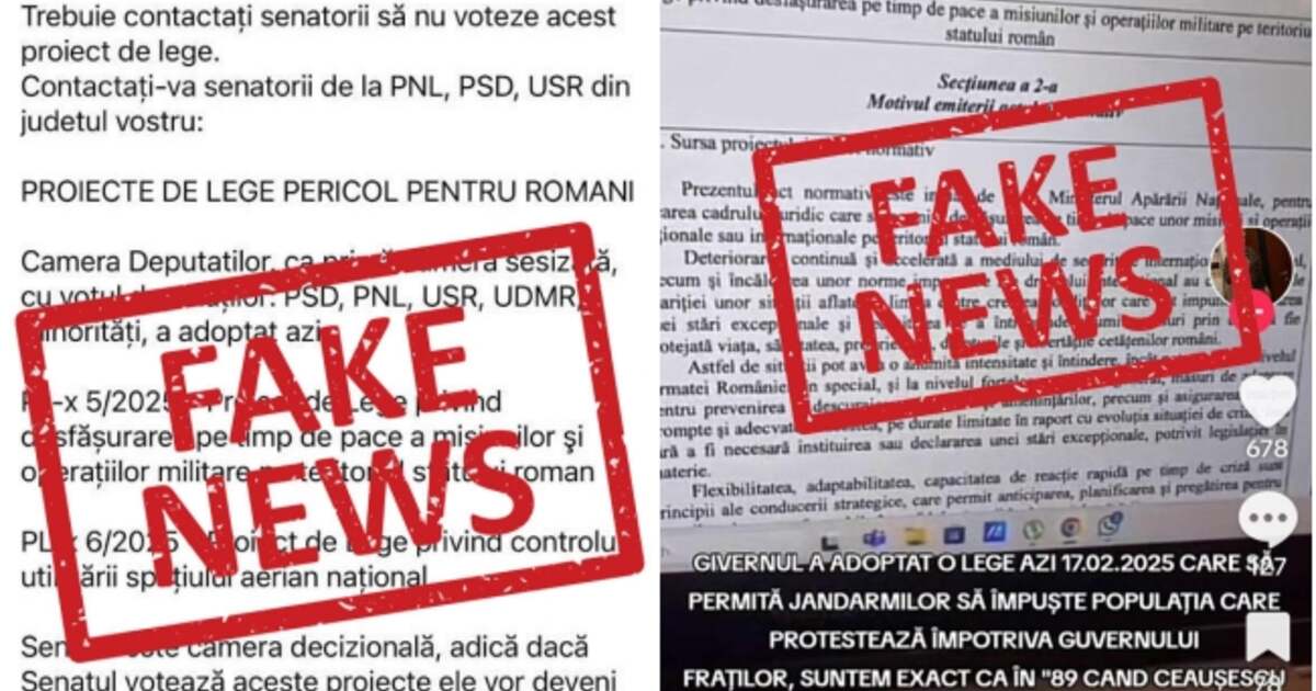 Ministerul Apărării avertizează că adoptarea legii ce permite armatei să doboare dronele care pătrund în spațiul aerian național și a legii privind misiunile militare pe timp de pace a generat o campanie masivă de dezinformare pe TikTok și Facebook, menită să inducă panică în România.
