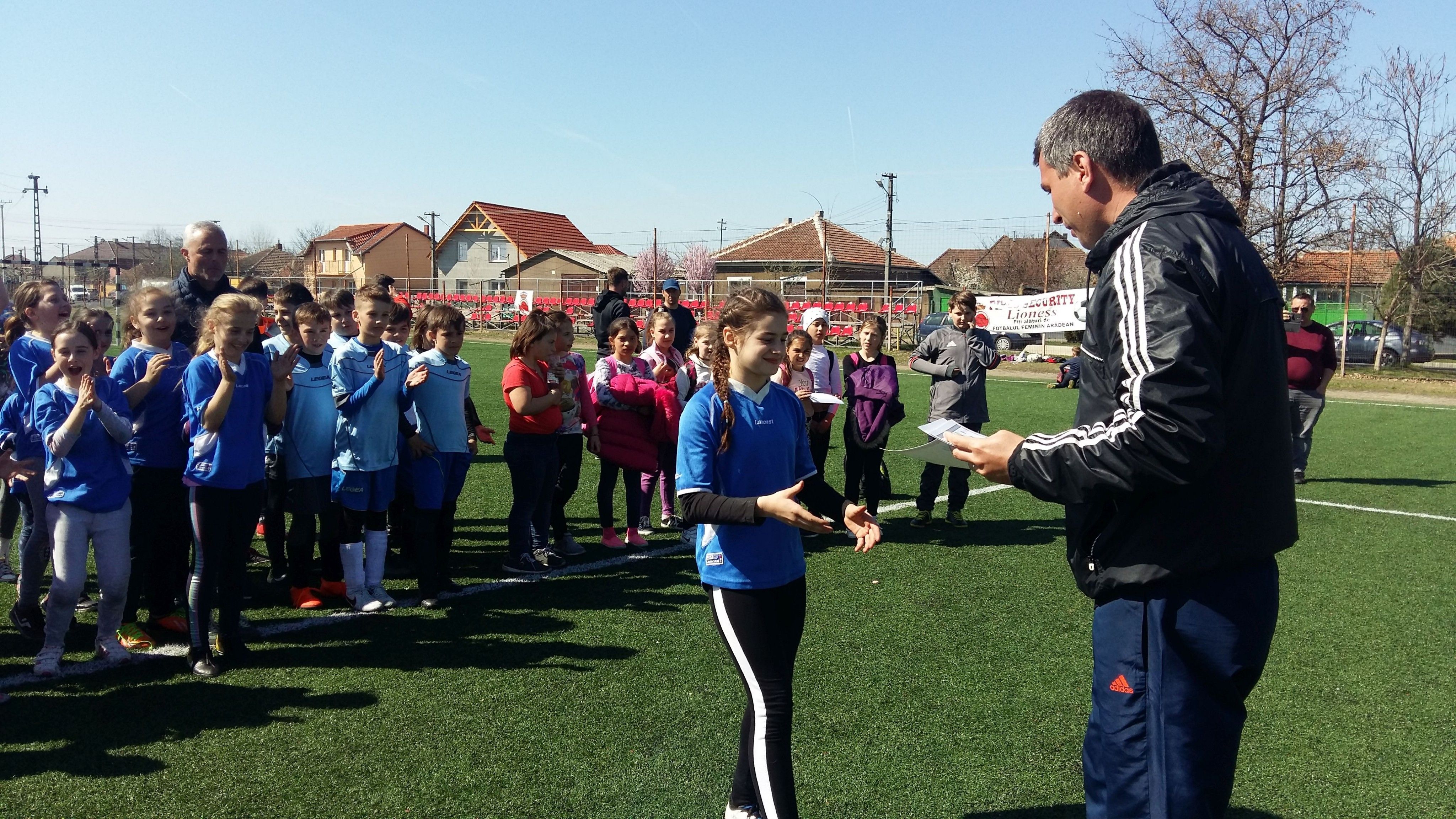 Patru terenuri de fotbal au fost „construite” pe stadionul Șega, pentru ca micuții să se poată desfăta în voie în cadrul Cupei „Tymbark Junior”, rezervată elevilor de 12 și 10 ani. La prima categorie s-au impus fetele de la Școala Gimnazială Tauț, 1-0 în finală, după 7 m, cu Șc. Gim. Șimand, și băieții de la Șc. Gim. „Regina Maria” (Generală 12), 3-0 în ultimul act cu Liceul Național de Informatică (Gen. 5).