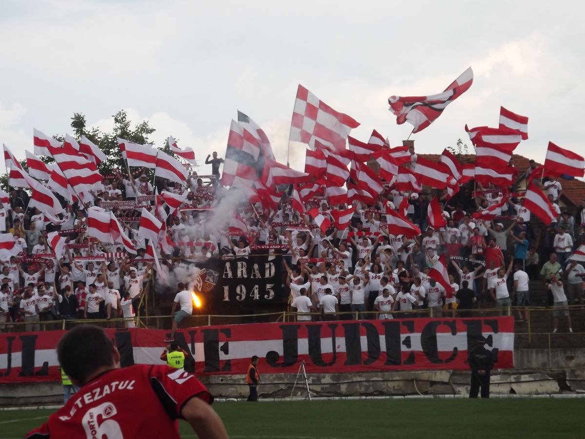 „Noua UTA” a primit, la meciul de baraj de la Lugoj, un ajutor imens din partea galeriei. Aceștia, adică vreo 500, s-au desfășurat la tribuna a doua, unde au luat loc și alți arădeni, iubitori ai fotbalului și – cu o coregrafie impresionantă – ne-au adus aminte de vremurile bune ale clubului UTA. Nu a fost ca la Alba Iulia, dar gândul ne-a purtat spre acel baraj cu Rocar.