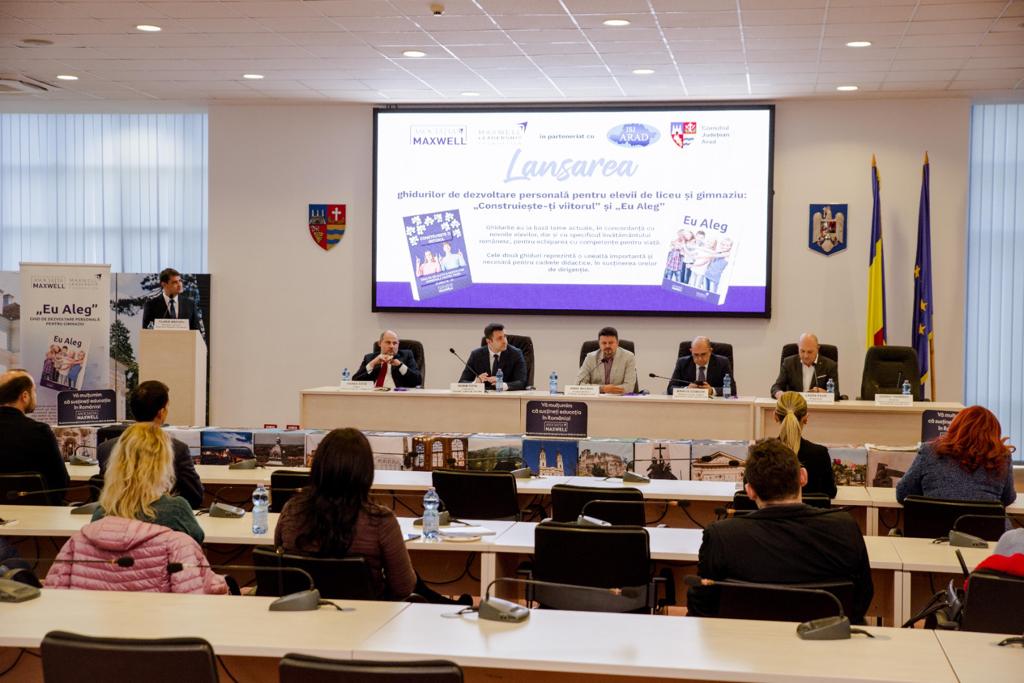 Marți, 21 noiembrie 2023 la Consiliul Județean Arad, au fost lansate ghidurile "Eu Aleg", respectiv ”Construiește-ți viitorul”, resurse educaționale inovative, concepute de Asociația Maxwell România pentru a ghida elevii de gimnaziu și liceu în călătoria lor de dezvoltare personală. Ghidurile au fost create pentru a fi utilizate în școli, vor fi distribuite gratuit și sunt menite să servească drept resurse valoroase, atât pentru elevi, cât și pentru cadrele didactice.