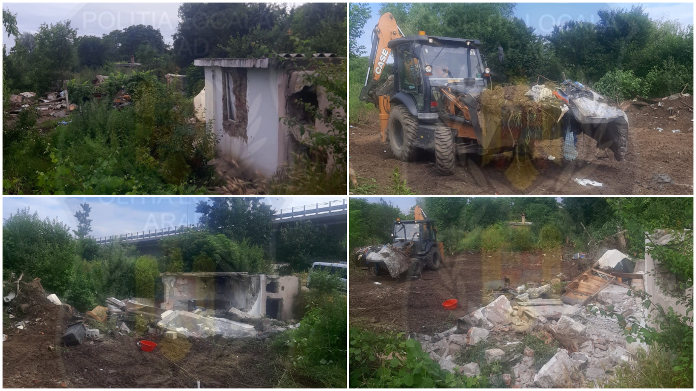 ARAD. În dimineața de zilei de miercuri, polițiștii locali cu atribuții de ordine publică din cadrul Direcției Generale Poliția Locală Arad au desfășurat o acțiune de salubrizare a zonei situate la capătul străzii Sabinelor, locație utilizată ca refugiu de persoane cu domiciliul în alte județe din țară, lipsite de locuință stabilă.