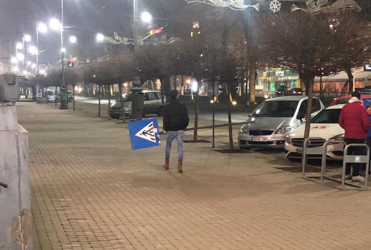 ARAD. Altă zi... alte mașini... alți șoferi... aceeași atitudine! Sub egida „regulile de circulație sunt pentru proști”, vă prezentăm o parcare inedită: un șofer și-a parcat mașina chiar într-un semn de circulație.
