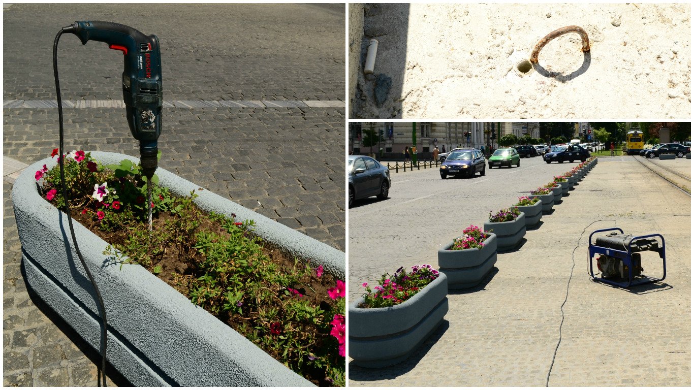 Două jardiniere din mozaic par că nu și-au mai găsit loc în noua amenajare propusă și realizată, se spune în mare, în scuarul de lângă Tribunalul Arad. Cândva un decor cu care Parcul Eminescu se mândrea (pe vremea când florile erau reginele de aici), cele două jardiniere imense nu au ajuns însă nici la gunoi, ci au fost aruncate parcă pe spațiul verde al scuarului, în spatele noii amenajări.