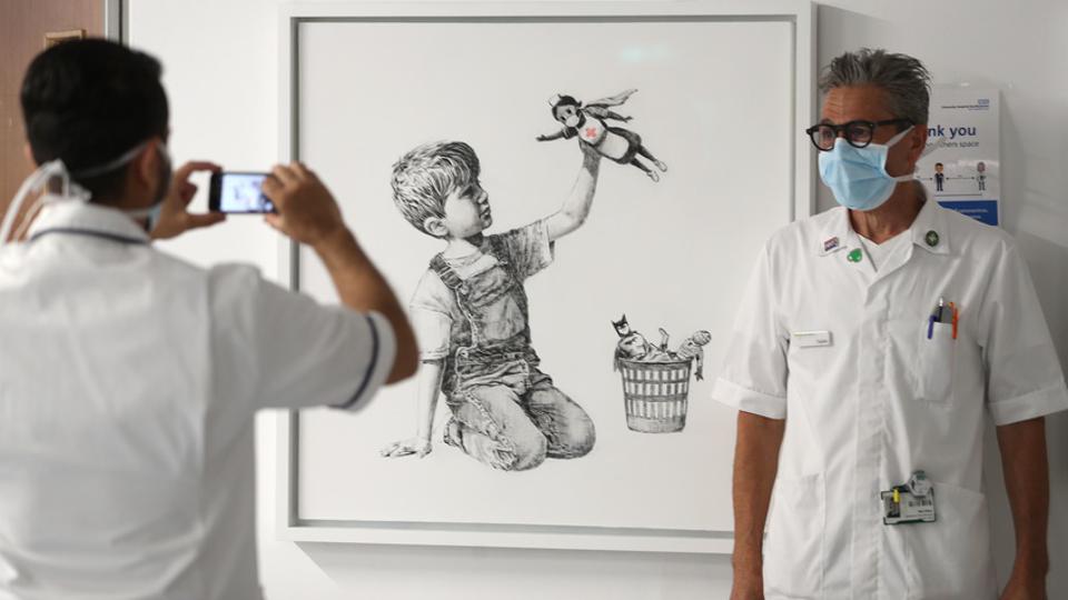 Un tablou realizat de artistul Banksy ce înfăţişează un băieţel care alege să se joace cu o păpuşă-infirmieră supererou în locul unor figurine reprezentându-i pe Batman şi Spiderman a fost vândut marţi cu peste 20 de milioane de dolari, stabilind un record la licitaţie pentru evazivul artist stradal britanic, relatează Reuters.