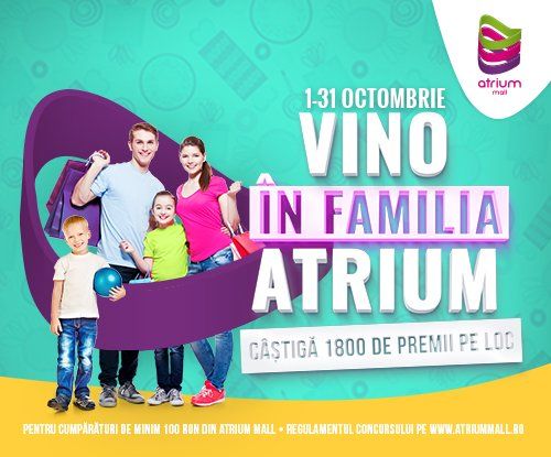 Există o mulțime de activități pe care le puteți face odată cu sosirea sezonului rece. Croșetatul, integramele, murăturile pentru iarnă, cărțile, muzica, facebook-ul - toate sunt motive excelente de stat în casă. Însă, toamna aceasta, Atrium Mall vine să vă ofere 1800 de motive să ieșiți din casă și să veniti in familia Atrium.