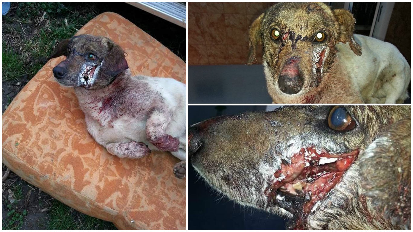 A fost găsit într-o stare gravă, cu răni deosebit de grave în zona feţei. Oameni de bine l-au luat, l-au dus acasă, iar acum căţelul a ajuns la Bucureşti unde va fi suspus unor operaţii la o clinică de animale. Oana Zăvoranu a anunţat pe contul de Facebook că va da o recompensă de 10.000 de lei persoanei care îi va spune numele celui care ar fi maltratat căţelul.