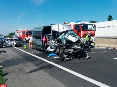 MAE a anunţat, luni, în urma unei solicitări MEDIAFAX, că opt români au fost răniţi în accidentul rutier produs pe o autostradă din Austria. Dintre aceştia, doi au suferit răni mai grave, iar alte şase persoane, printre care şi trei minori, au fost rănite uşor. Mai multe persoane au fost rănite, unele fiind în stare gravă, după ce un microbuz şi un autoturism înmatriculate în România au intrat în coliziune cu un camion, pe o autostradă din Austria, informează presa austriacă.