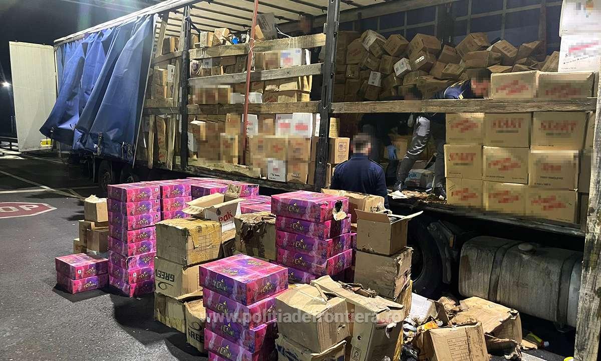 Șoferul camionului, un cetățean turc, este cercetat după ce polițiștii de frontieră de la Nădlac II au descoperit în automarfarul pe care îl conducea 23 de migranți din Turcia, Siria, Irak și Pakistan, dar și peste 5 tone de tutun de narghilea - în valoare de peste 5 milioane de lei - pentru care nu a putut prezenta documente.