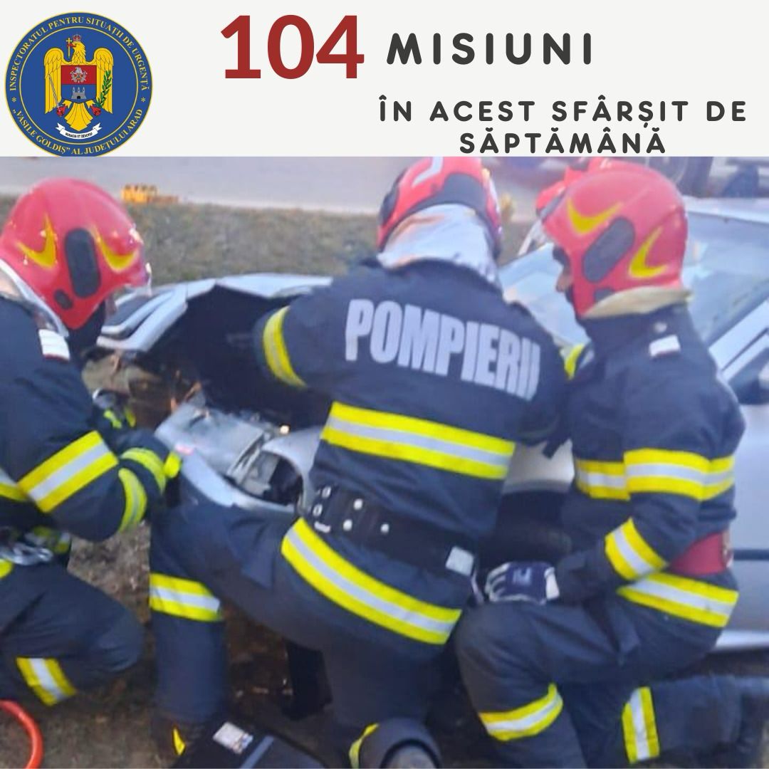 Pompierii din cadrul Inspectoratului pentru Situații de Urgență Arad au gestionat la sfârșitul săptămânii trecute 96 de intervenții în situații de urgență. Majoritatea dintre acestea au constat în asistență medicală, echipajele SMURD acționând în cazul a 86 de solicitări. Salvatorii au intervenit pentru stingerea a două incendii.