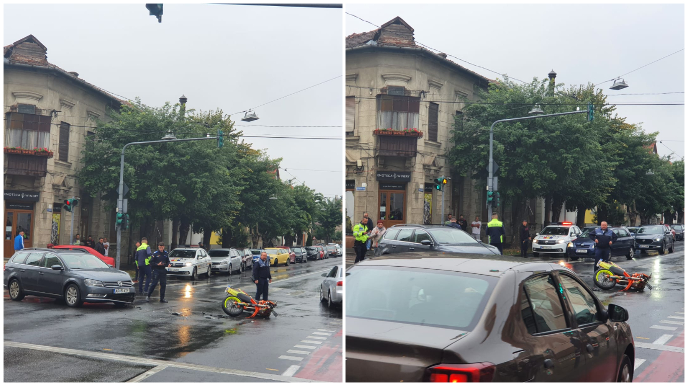 Un tânăr de 20 de ani, din Arad, aflat pe o motocicletă a intrat în coliziune cu un autoturism condus de o femeie în vârstă de 60 de ani. În urma impactului, motociclistul a fost transportat la spital. Accidentul a avut loc marți după masa, la intersecția străzii Mărășești cu Octavian Goga. Potrivit informațiilor noastre, se pare că motociclistul nu ar fi respectat semnificația culorii roșu a semaforului și a pătruns în intersecție.