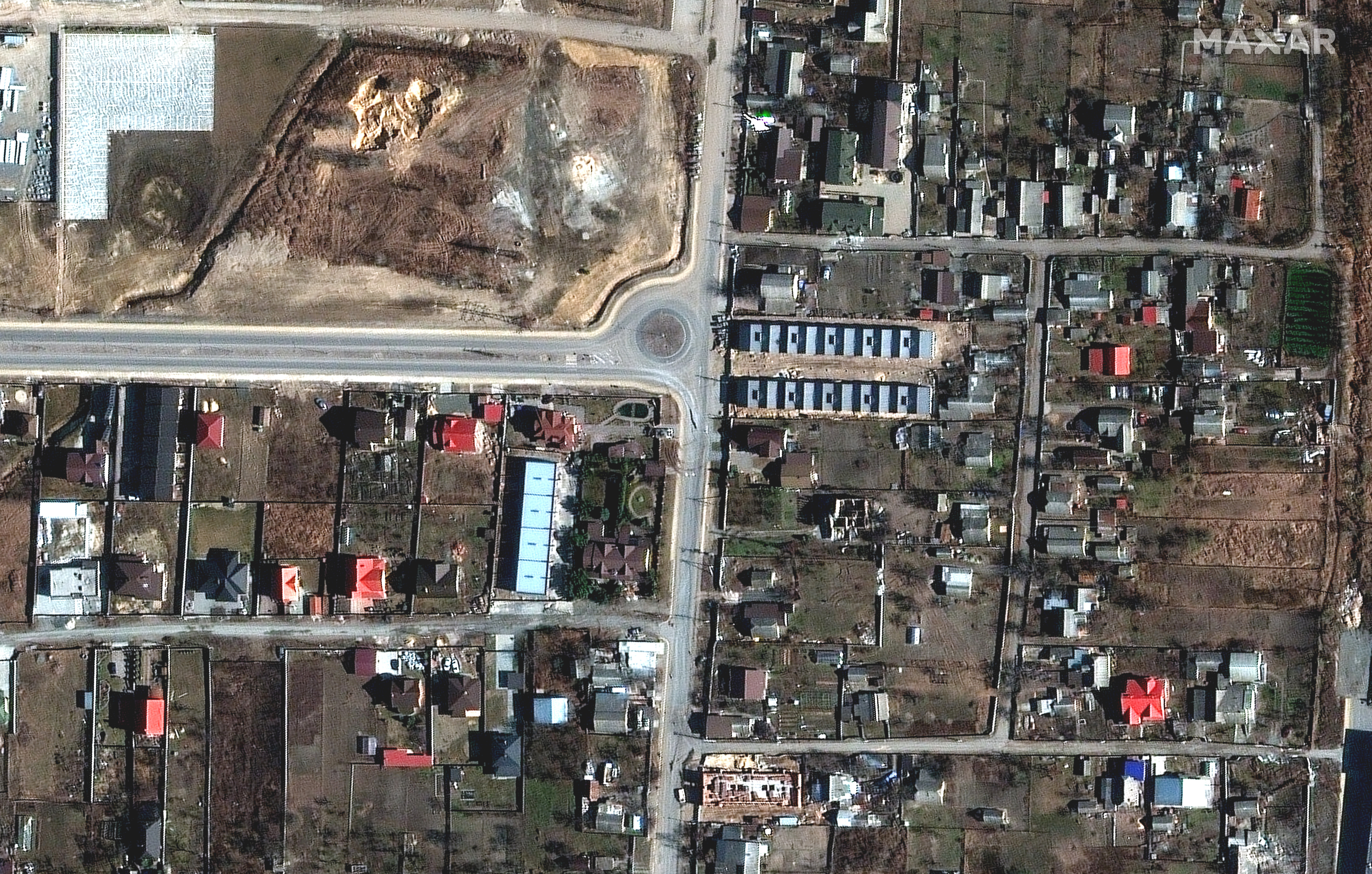 Imaginile, înregistrate de un satelit al companiei de specialitate Maxar Technologies, datează de pe 11 martie, dată la care trupele ruse încă ocupau oraşul, şi arată 11 cadavre aflate la sol, toate pe aceeaşi stradă, numită Iablonska.