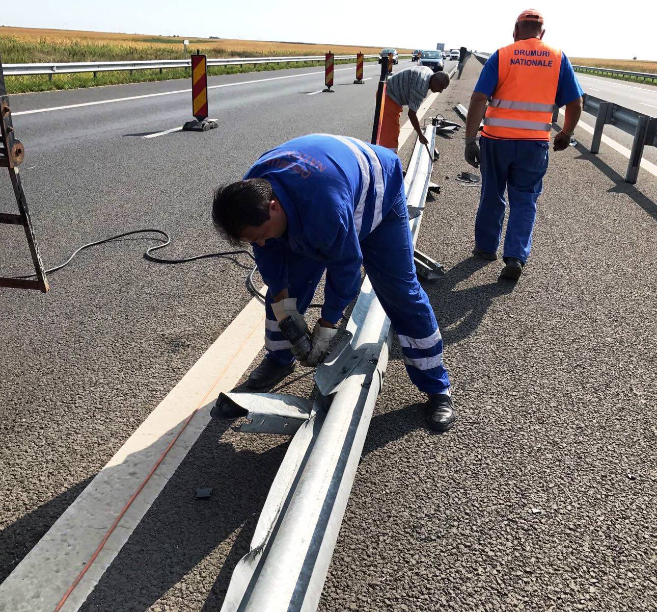 Câteva balize antiorbire de pe tronsonul Pecica-Nădlac (inaugurat la 11 iulie) al autostrăzii au fost smulse de vântul puternic și împrăștiate pe banda unu de mers.