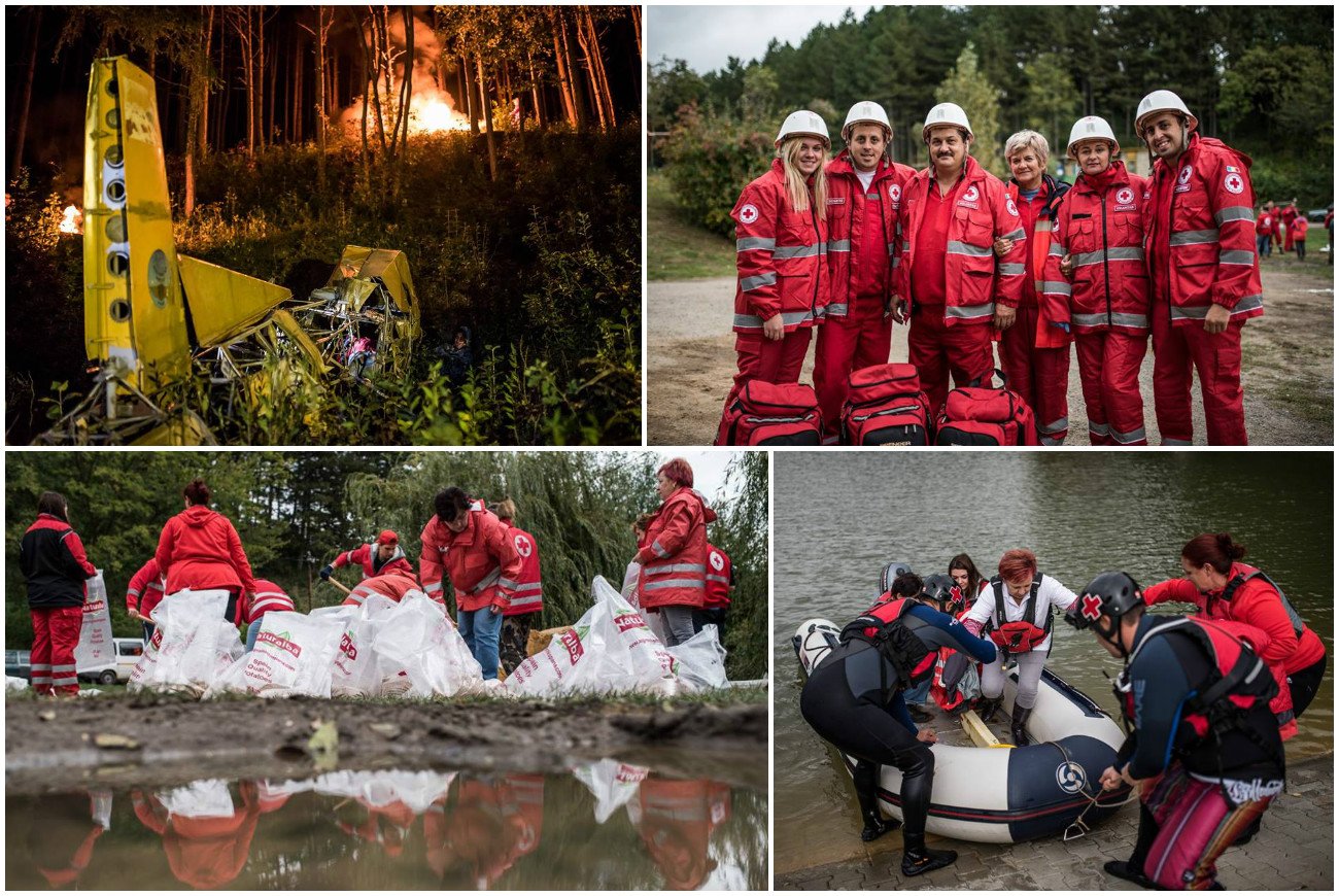 Avion cu 37 de persoane la bord prăbuşit în toiul nopţii. Ziua: inundaţii masive, cu pericol de înec şi alunecări de teren. Din fericire, aceste dezastre nu au fost reale, ci au făcut parte dintr-un exerciţiu major al Crucii Roşii Maghiare. Aplicaţia s-a desfăşurat în perioada 7-9 octombrie, lângă localitatea Pecs şi a mobilizat 200 de persoane aparţinând organizaţiilor de Cruce Roşie din Croaţia, Bulgaria, România şi Serbia.