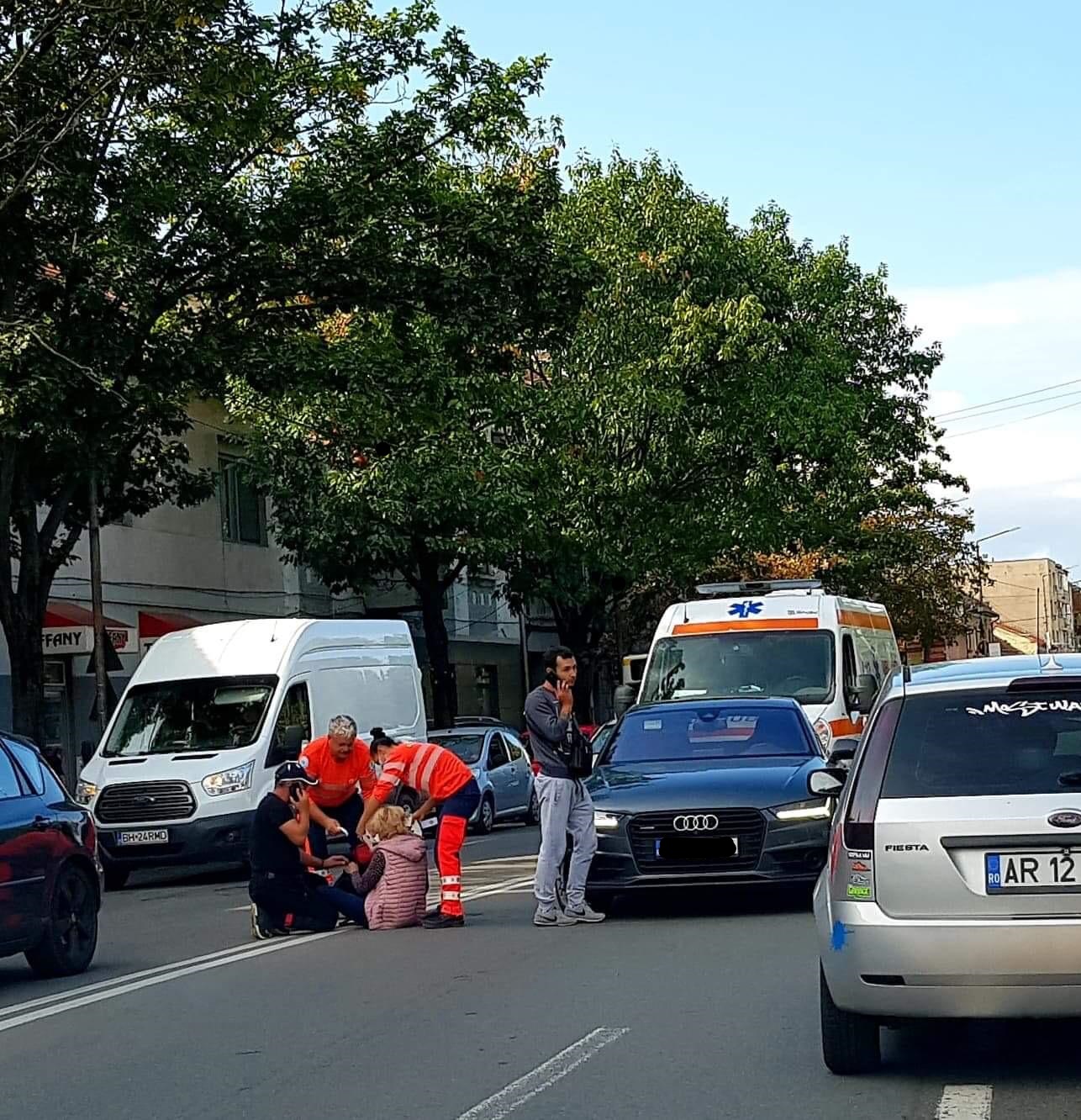 Este vorba despre o femeie în vârstă de 40 de ani, care a fost accidentată, luni seara, pe trecerea de pietoni de pe Calea Victoriei, situată la intersecția cu strada Feleacului. Victima a fost lovită de un autoturism, apoi a fost proiectată pe cealaltă bandă de circulație a aceluiași sens de mers, unde a fost izbită de o altă mașină. Femeia a fost transportată la Spitalul Clinic Județean de Urgență Arad, unde a fost operată, pacienta suferind - potrivit informațiilor noastre -, fracturi la bazin și coaste și ruptură de splină.