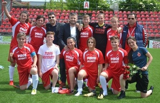 Vis împlinit, cu puţine emoţii, de fetele de la Piroş Security, care au promovat în elita fotbalului românesc, după spectaculoasă remiză, scor 3-3, de pe sinteticul de la Motorul, cu „satelitul” campioanei ţării, Olimpia Cluj. Jocul nu a fost o simplă formalitate pentru „leoaicele” pregătite de Gigi Cameniţă, care s-au văzut conduse, până în min. 71, la două goluri diferenţă. Golurile echipei noastre au fost semnate de A. Balaş (1-0), Vanu (2-3) şi Olariu (3-3).