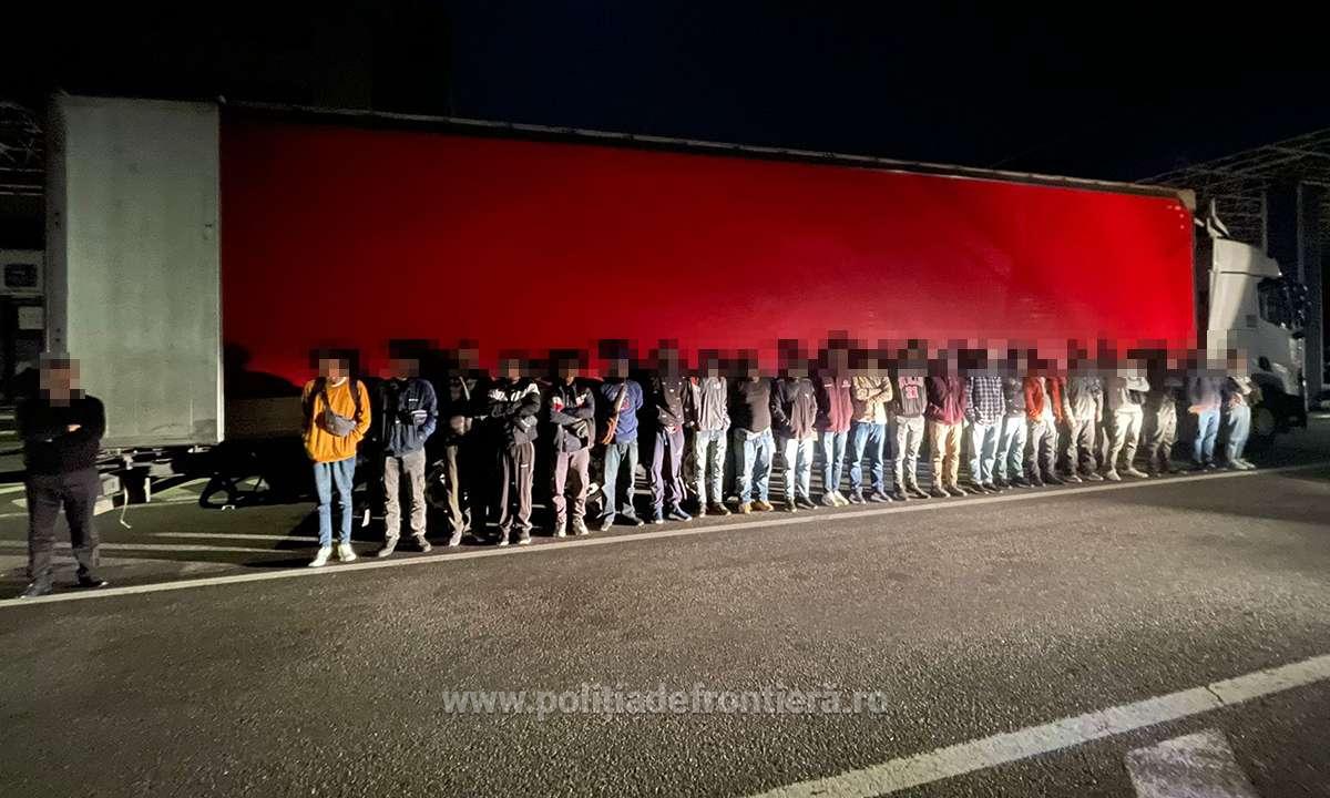 Poliţiştii de frontieră din cadrul Punctului de Trecere a Frontierei Nădlac II au depistat 51 de cetăţeni din Maroc, Turcia și Siria care au încercat să treacă ilegal frontiera în Ungaria, ascunşi în două automarfare încărcate cu produse din PVC și bare de metal pentru societăți comerciale din Cehia și Polonia.