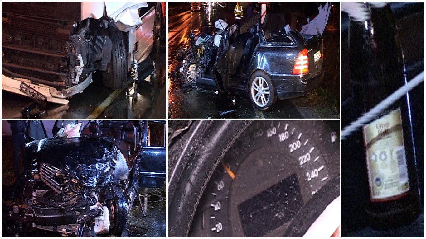 Grav accident de circulație duminică dimineața la ieșirea din Arad. Doi oameni se zbat între viață și moarte după ce mașina în care se aflau a intrat sub roțile unui TIR. Șoferul mașinii a condus cu viteză pe șoseaua umedă, a făcut mai multe depășiri apoi a intrat pe contrasens unde s-a izbit frontal de un autotren.
