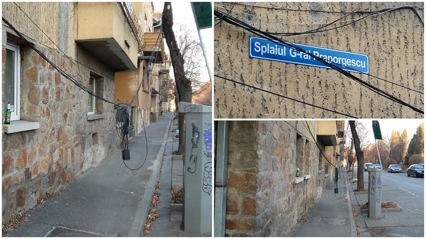 Cabluri desprinse din perete, poziționate chiar în mijlocul trotuarului, la nici un metru de pământ, două sticle de bere pe pervazul unui geam și un indicator pentru locuri de parcare îndoit. Aceasta este imaginea pe care a surprins-o un arădean care ne-a contactat pe adresa redacției Jurnal arădean/Aradon. Este vorba de trotuarul situat pe Splai General Praporgescu, chiar la colțul cu strada Nicolae Grigorescu de lângă Tribunalul Arad. Imaginile surprinse de arădean nu lasă loc de prea multe comentarii.
