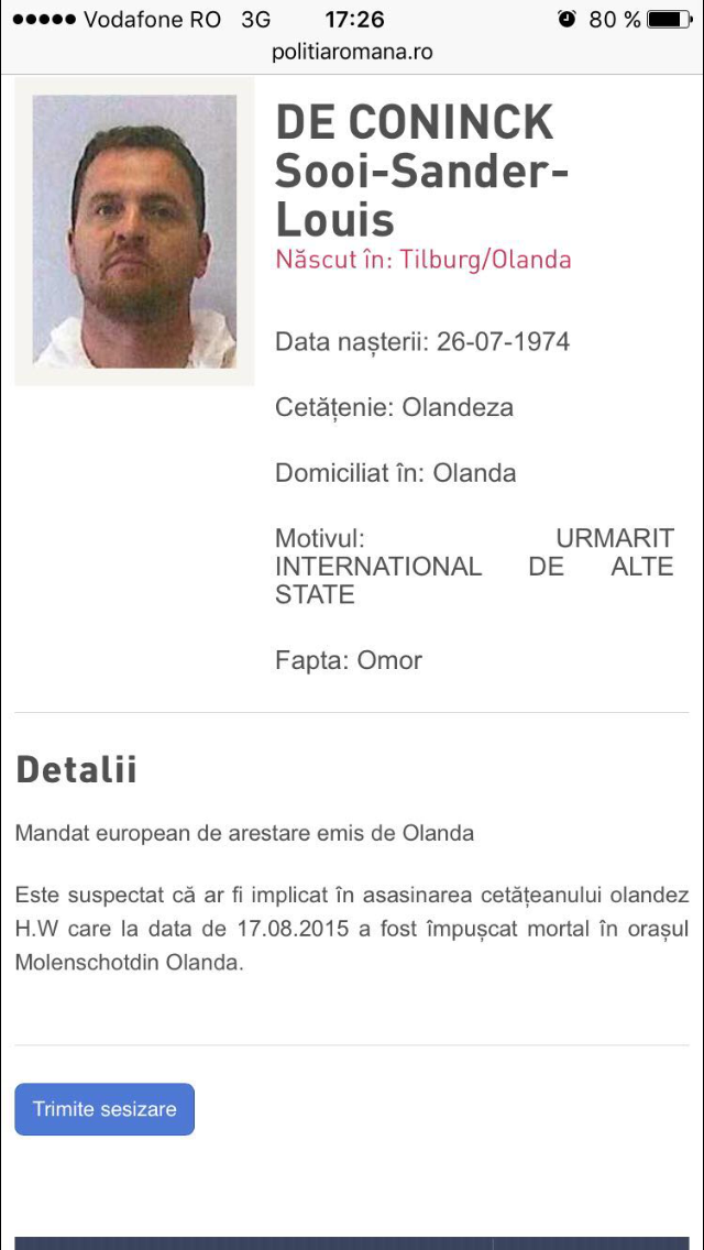 Este căutat în Olanda, fiind bănuit că ar fi implicat în asasinarea unui tânăr de 27 de ani. Polițiștii olandezi au solicitat, vineri, ajutorul polițiștilor români, iar astăzi, în urmă cu aproximativ două ore, asasinul, în vârstă de 42 de ani, a fost depistat de polițiștii din cadrul Serviciului de Investigații Criminale din cadrul IPJ Arad, chiar pe raza municipiului nostru.