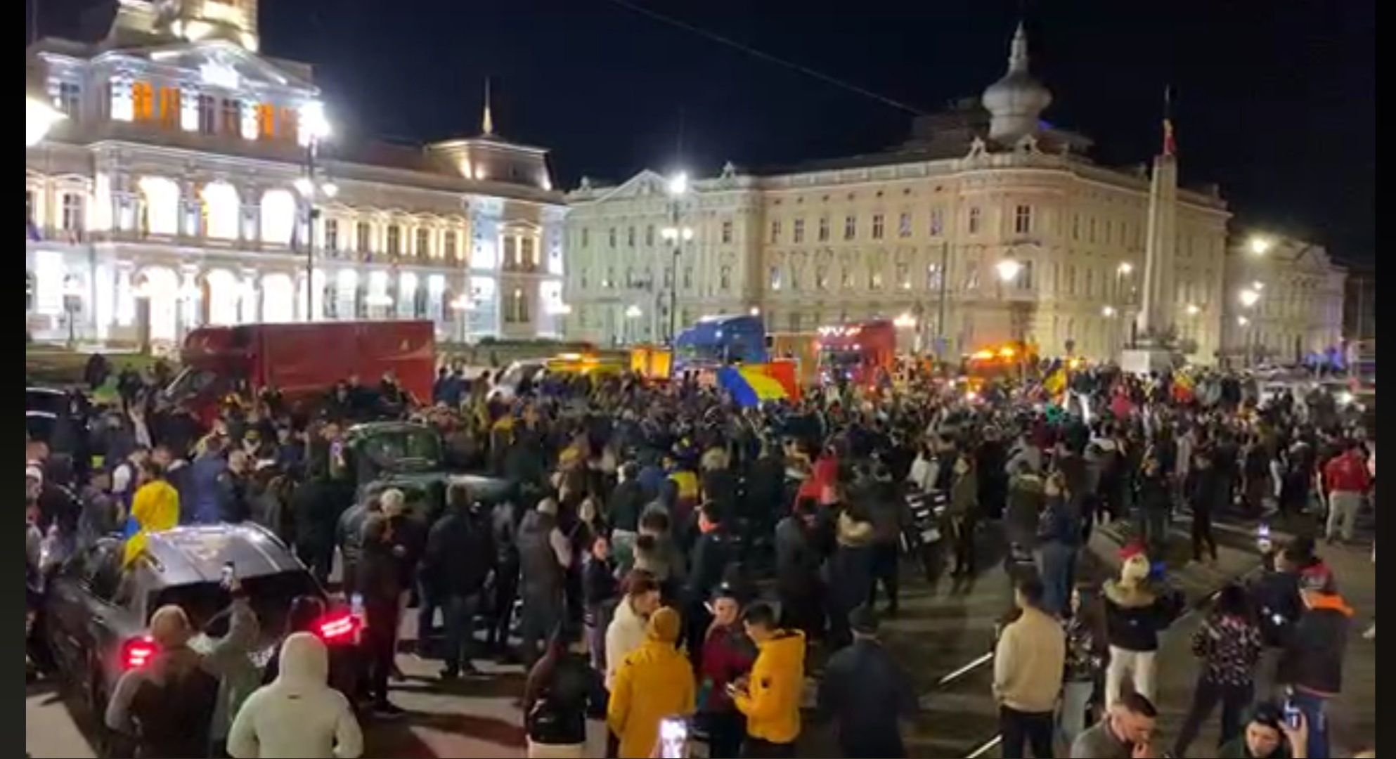ARAD. După seara incendiară de ieri, când au ieșit în stradă în jur de 2000 de persoane, a treia zi de proteste la Arad a debutat la ora 20:00, cu doar câțiva protestatari care fluturau drapele în fața primăriei. UPDATE: Coloane de mașini se îndreaptă spre centru. UPDATE: Coloana de protestatari a fost însoțită, de această dată de mașini ale Jandarmeriei. În continuare, zeci de mașini staționează în fața Primăriei. Traficul pe bulevard este complet blocat. UPDATE. 22:20 Coloane de automarfare, autoutilitare de tractare și autoturisme se deplasează înspre Centrul Aradului dinspre Vladimirescu.