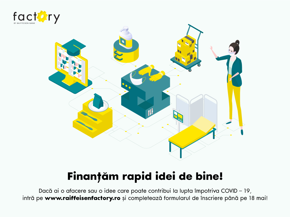 ADVERTORIAL. Situația actuală a afectat foarte mult mediul de afaceri din România, iar IMM-urile au avut cel mai mult de suferit. Raiffeisen Bank a adaptat programul de creditare factory și vine în sprijinul antreprenorilor cu idei de bine. Până pe 18 mai ei pot aplica pentru un credit de până la 50.000 euro, care vine la pachet cu mai multe beneficii, financiare și non-financiare.
