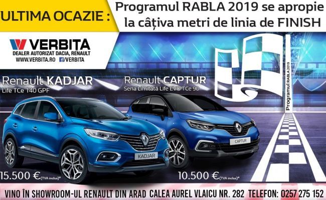ADVERTORIAL. Renault lansează în România noul Renault Captur cu un eveniment special. La Renault, Verbiță din Arad. Showroom-ul va fi deschis tot weekendul pentru cei ce doresc să vadă și să testeze cel mai nou model din familia Renault. Pe lângă acest lucru Renault vine și cu un super concurs prin care participanții pot câștiga un weekend oriunde în România la volanul noului Renault Captur.