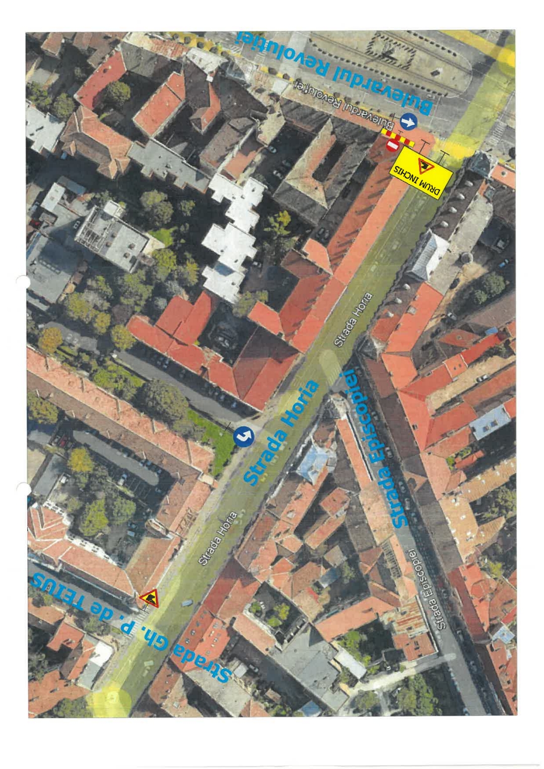 Comisia de Sistematizare a Circulației a avizat favorabil închiderea circulației rutiere pe strada Horia, tronsonul cuprins între intersecția B-dul Revoluției și intersecția cu str. Gheorghe Popa de Teiuș, pe sensul de deplasare dinspre B-dul Revoluției spre str. Gheorghe Popa de Teiuș,  începând de vineri, 5 septembrie 2025, ora 7:00, până sâmbătă, 6 septembrie 2025, ora 24:00.
