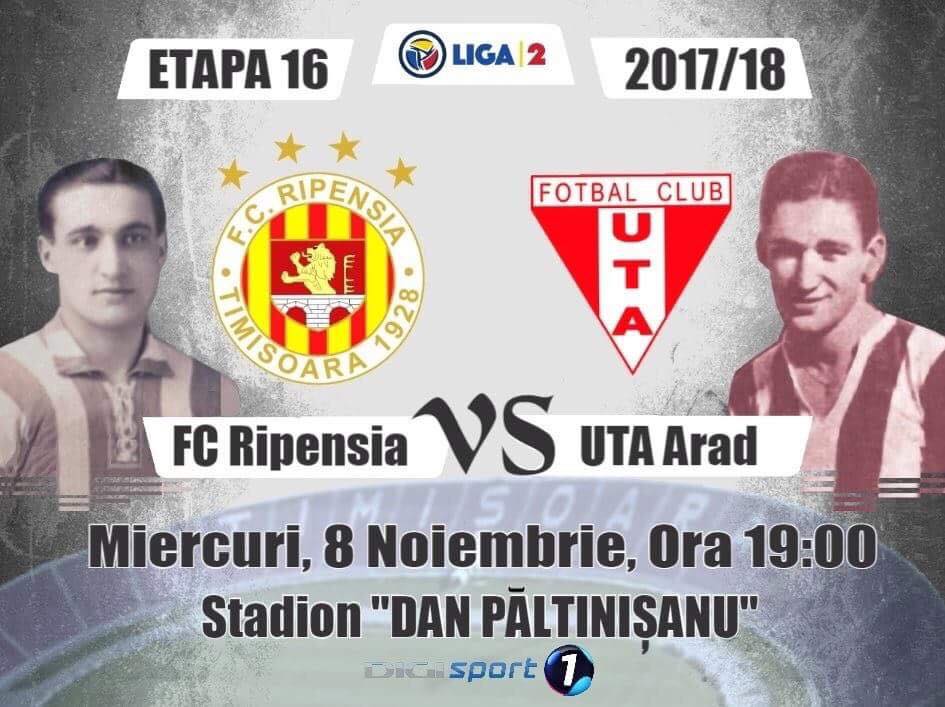 Formații oficiale: Ripensia: Rădulescu - Popa, Stoi, Apro, Vlădia - Ungureanu, C.Toma, Zaluschi, L.Tudor - Dumiter, Mediop. Rezerve: Munteanu - Semeniuc, M.Toma, Horcea, Golda, Bobină, Matiș. UTA: Grahovac - Adili, Scutaru, Ciucă, Burlă - Strătilă, Tănase, Cârstocea, Hlistei - Stahl, Curtuiuș. Rezerve: Svedkauskas - Polgar, Asani, Păcurar, Jorza, Prună, Iuga.