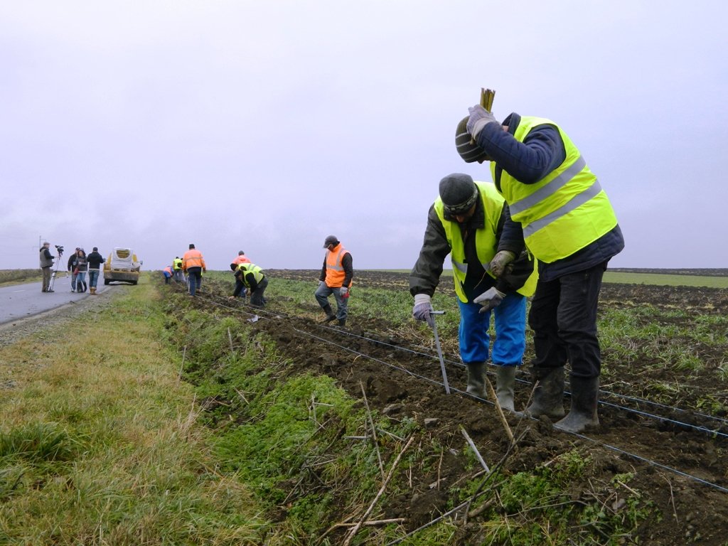 Pe drumul Semlac-Șeitin a început plantarea sălciilor energetice, viitoare perdele în calea viscolului.