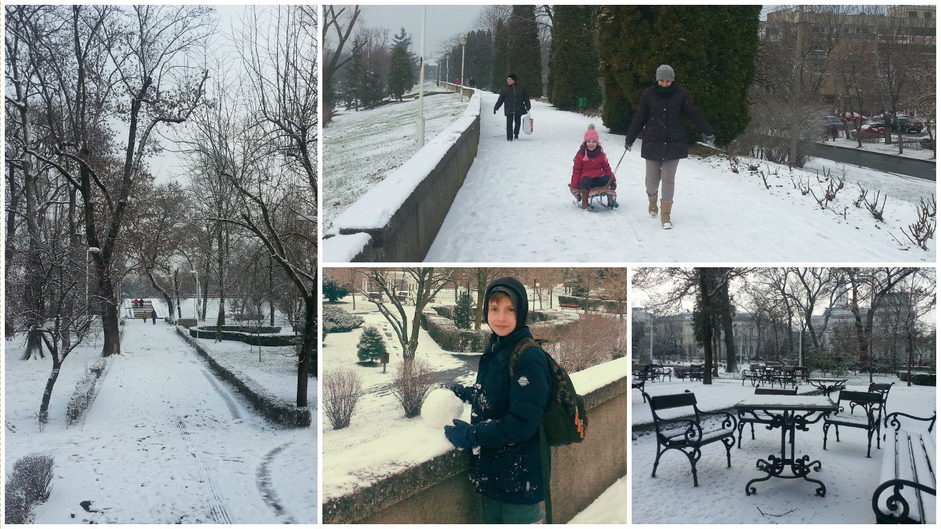 Arad. Vineri seara, în faţaPalatului Administrativ, a poposit Moş Crăciun, într-o sanie superbă. e drept, trasă pe uscat şi nu de către reni, ci de către doi cai frumoşi.