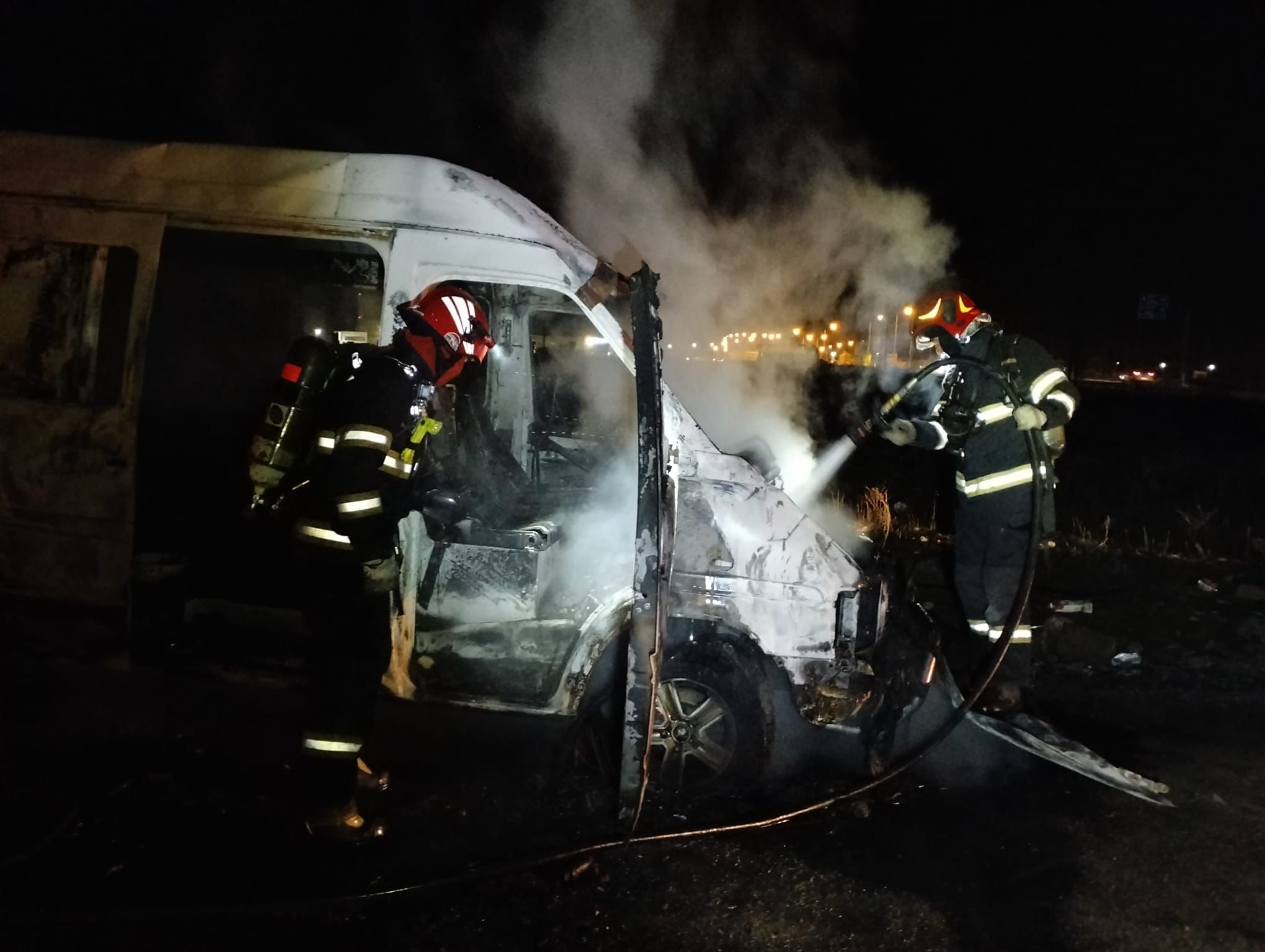 Microbuz distrus de flăcări, lângă CET. Două persoane au suferit arsuri