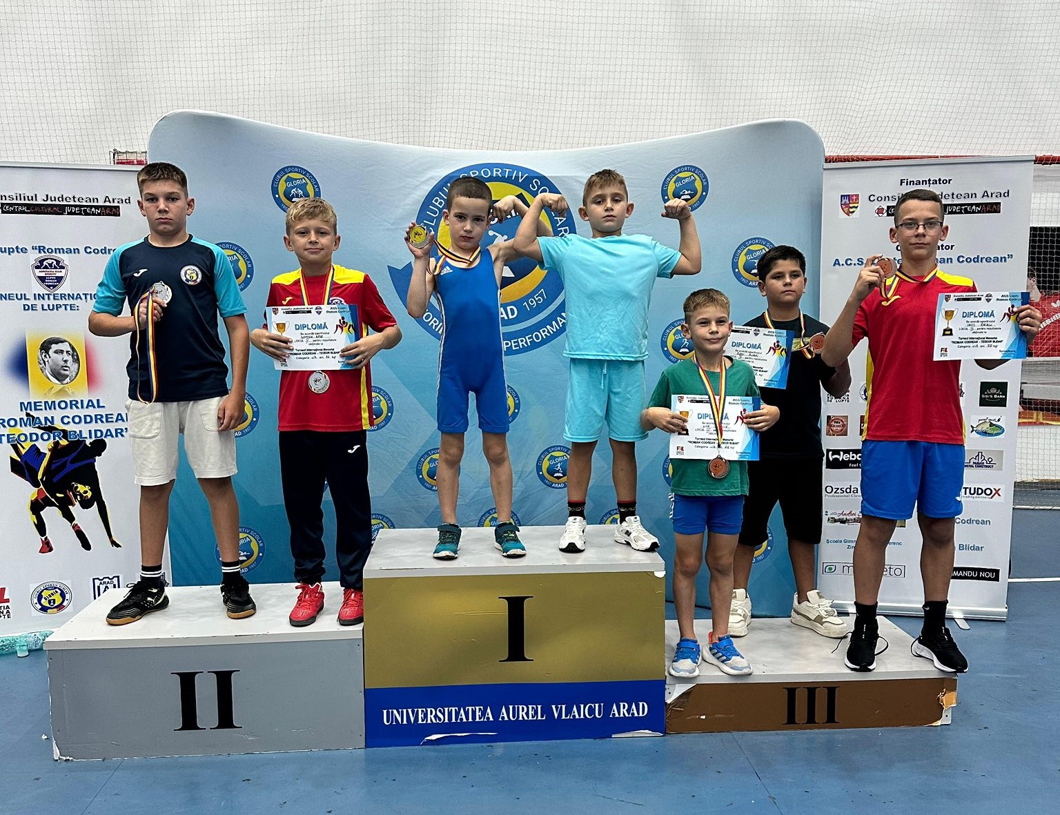 ARAD. Zilele trecute, sala de sport „Mihai Botez” a Universității „Aurel Vlaicu” din Arad a fost gazda turneului internațional de lupte - Memorialul „Roman Codrean – Teodor Blidar”. Peste 120 de sportivi de la 20 de cluburi din Serbia, Republica Moldova, Bulgaria, Ungaria și România s-au aliniat la start.