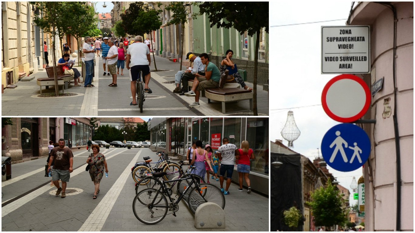 Singura stradă pietonală din Municipiu, strada Mețianu, a prins viață datorită umbrelelor colorate montate la înălțime.