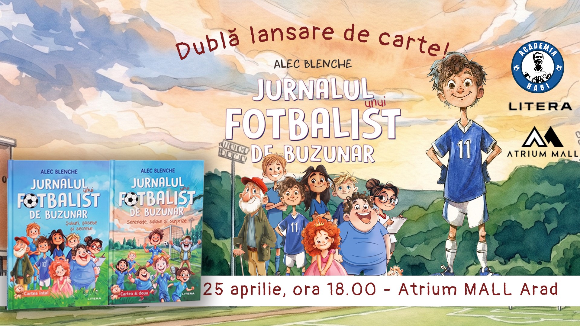 Alec Blenche la Atrium Mall: unul dintre cei mai îndrăgiti autori de cărți pentru copii din România lansează printr-un spectacol inedit primele două volume din „Jurnalul unui fotbalist de buzunar”
