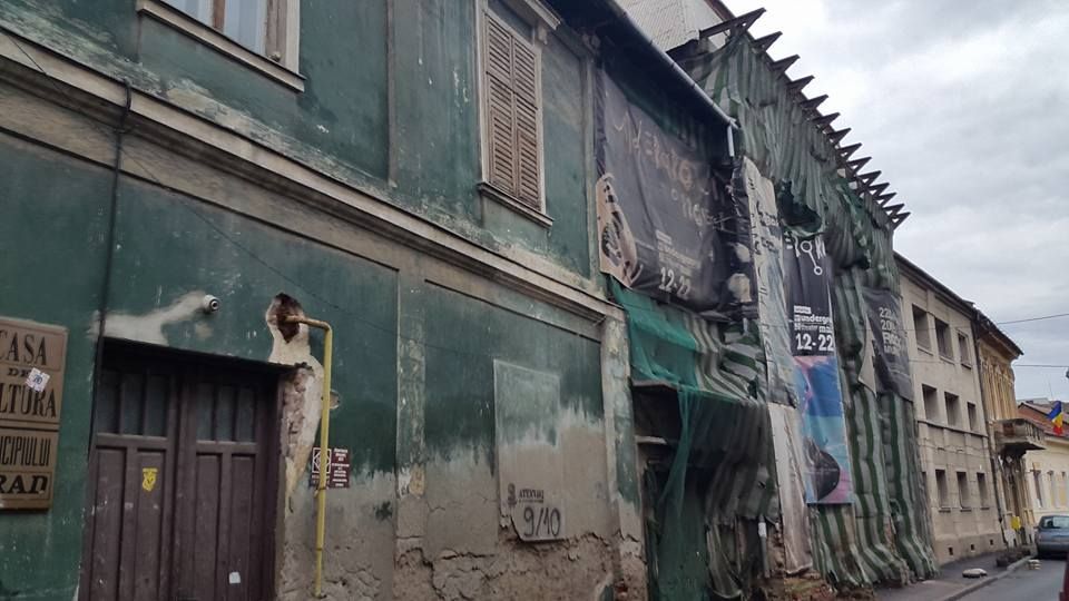 ARAD. Pericol pentru arădeni, la Teatrul Vechi. Detaşamentul de Pompieri Arad a fost solicitat să intervină pentru îndepărtarea unor elemente de construcţie de pe faţada Teatrului Vechi.