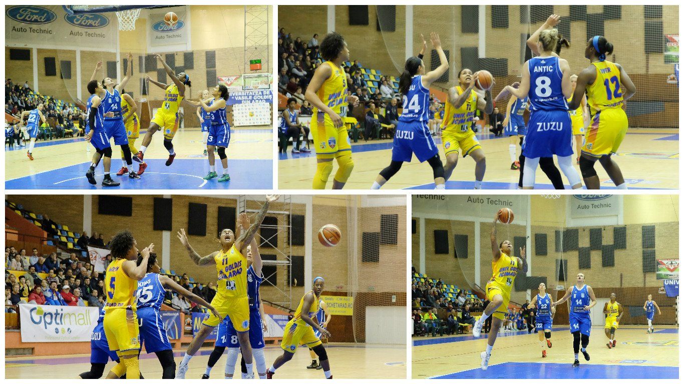 Reeditarea finalei pentru bronz din sezonul trecut al Ligii Naţionale de baschet feminin a început îngrozitor de slab, ambele echipe exagerând cu ratările, dovadă şi scorul primului sfert, 8-11. Având în Webb şi King două americance în poftă de joc, CSU Alba Iulia a controlat ostilităţile până cu trei minute înainte de pauza mare, când galben-albastrele au avut o uşoară trăsărire de orgoliu şi au strâns scorul pe tabela de marcaj dintr-o „Polivalentă” în care cei peste 700 spectatori au dârdîit de frig.