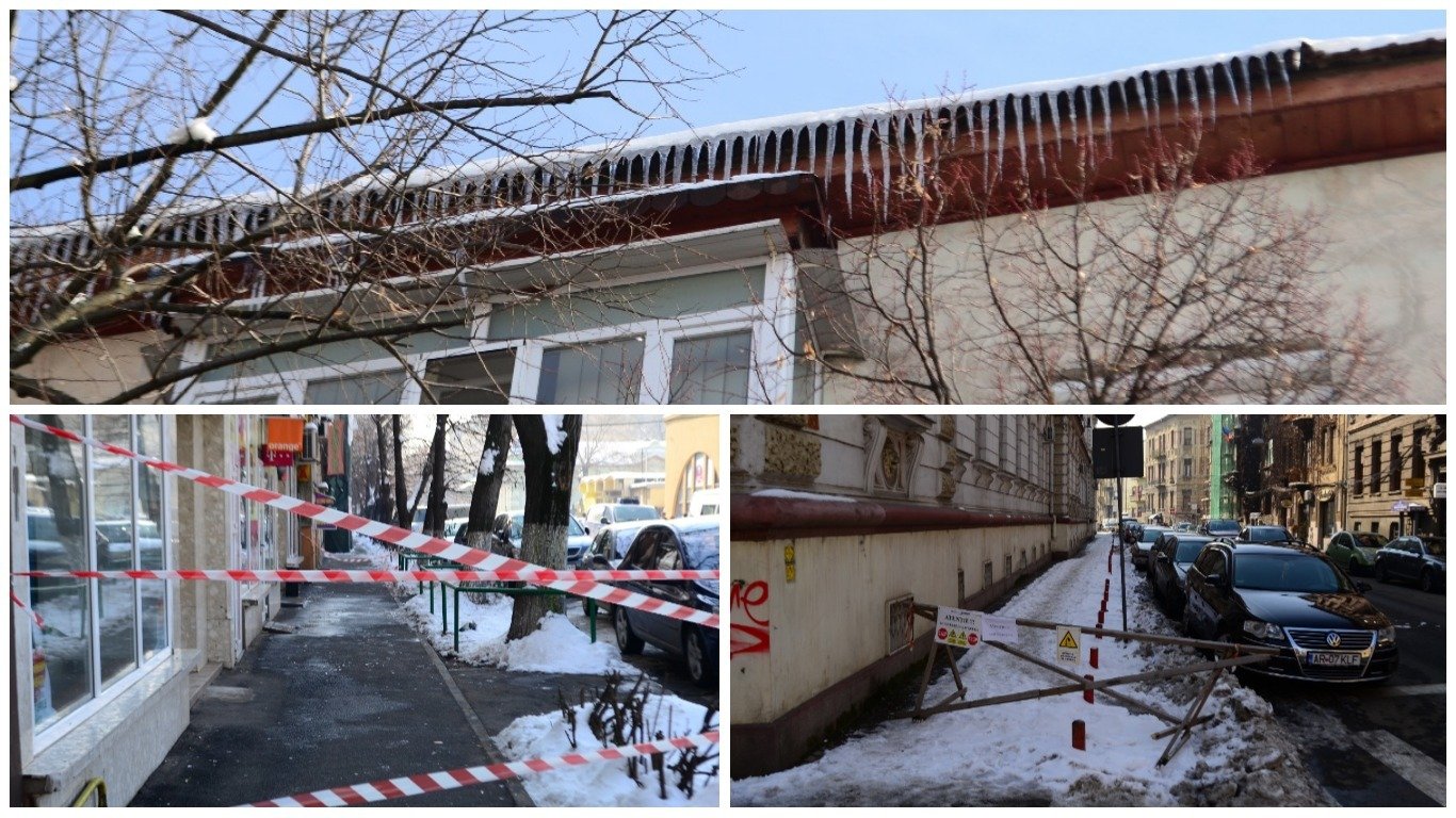 ARAD.Pompierii sunt solicitați în continuare pentru a îndepărta țurțurii rămași pe clădiri.