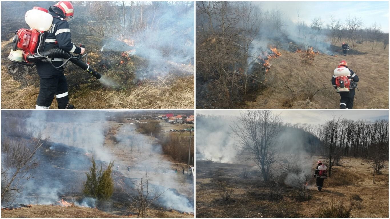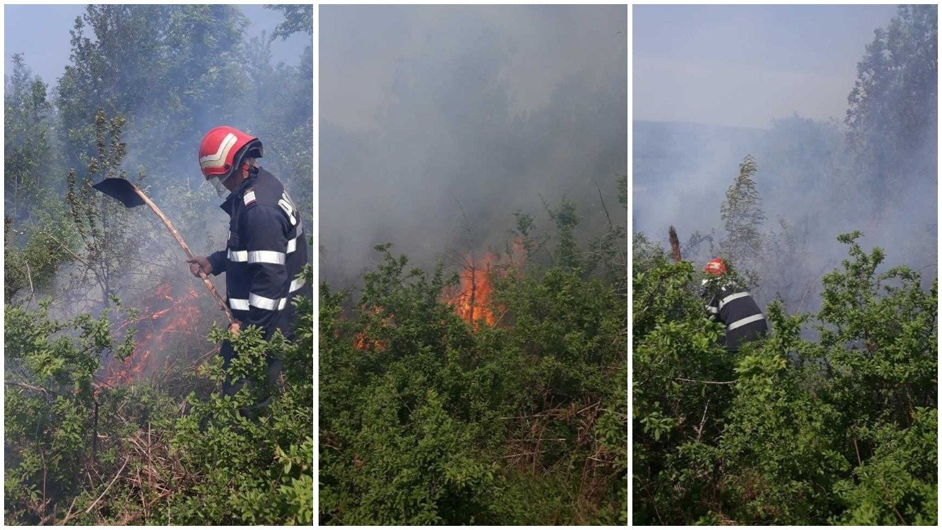 Incendiu de vegetație uscată pe Poetului! Trei echipaje de pompieri trimise pentru stingerea focului