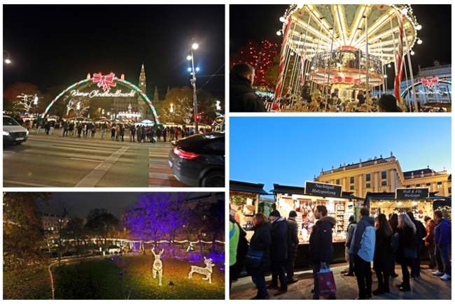 Viena, în această perioadă, dă tonul în organizarea târgurilor de Crăciun. Cel mai cunoscut e cel din Rathausplatz, „la primărie”, unde afluxul de oameni e mai mare. Sunt târguri de Crăciun și în curte la Schonbrunn, la Muzeul de Științe Naturale și în alte locuri din capitala Austriei. Decorațiuni luminoase pe stradă de sărbători? Puține sau... deloc. Brazi împodobiți pe străzi? Nu! Brazi și... atât, unii mai au globuri... O experiență interesantă și... minimalistă...
