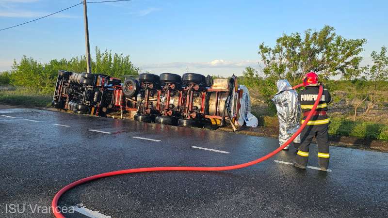 Traficul este blocat, sâmbătă, pe drumul naţional DN2 (E85), la Mărăşeşti, după ce o cisternă cu etanol, înmatriculată în Republica Moldova, s-a răsturnat pe carosabil, şoferul fiind declarat decedat după ce a fost descarcerat, a informat Inspectoratul pentru Situaţii de Urgenţă (ISU) Vrancea.