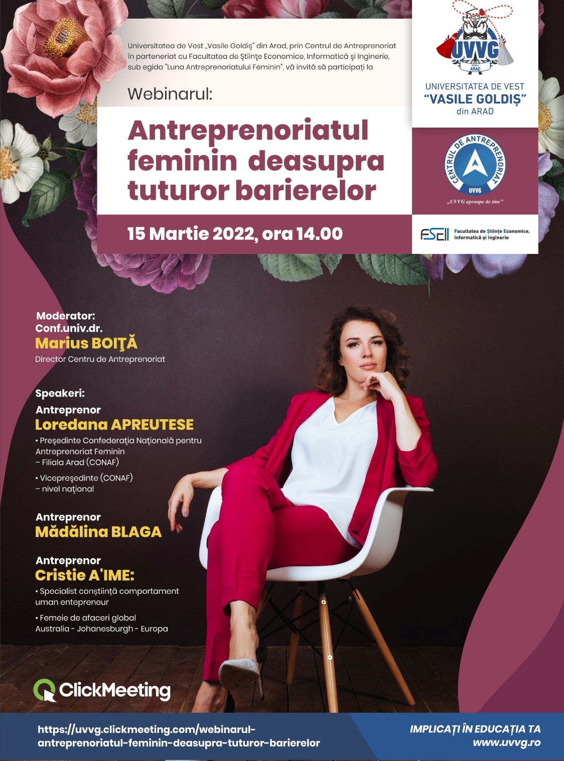 Universitatea de Vest „Vasile Goldiş” din Arad, prin Facultatea de Științe Economice, Informatică și Inginerie, ȋn parteneriat cu Centru de Antreprenoriat din cadrul Universităţii de Vest „Vasile Goldiş” din Arad, a organizat webinarul: „Economia verde. Schimbări tehnologice vs. Schimbări de comportament ".