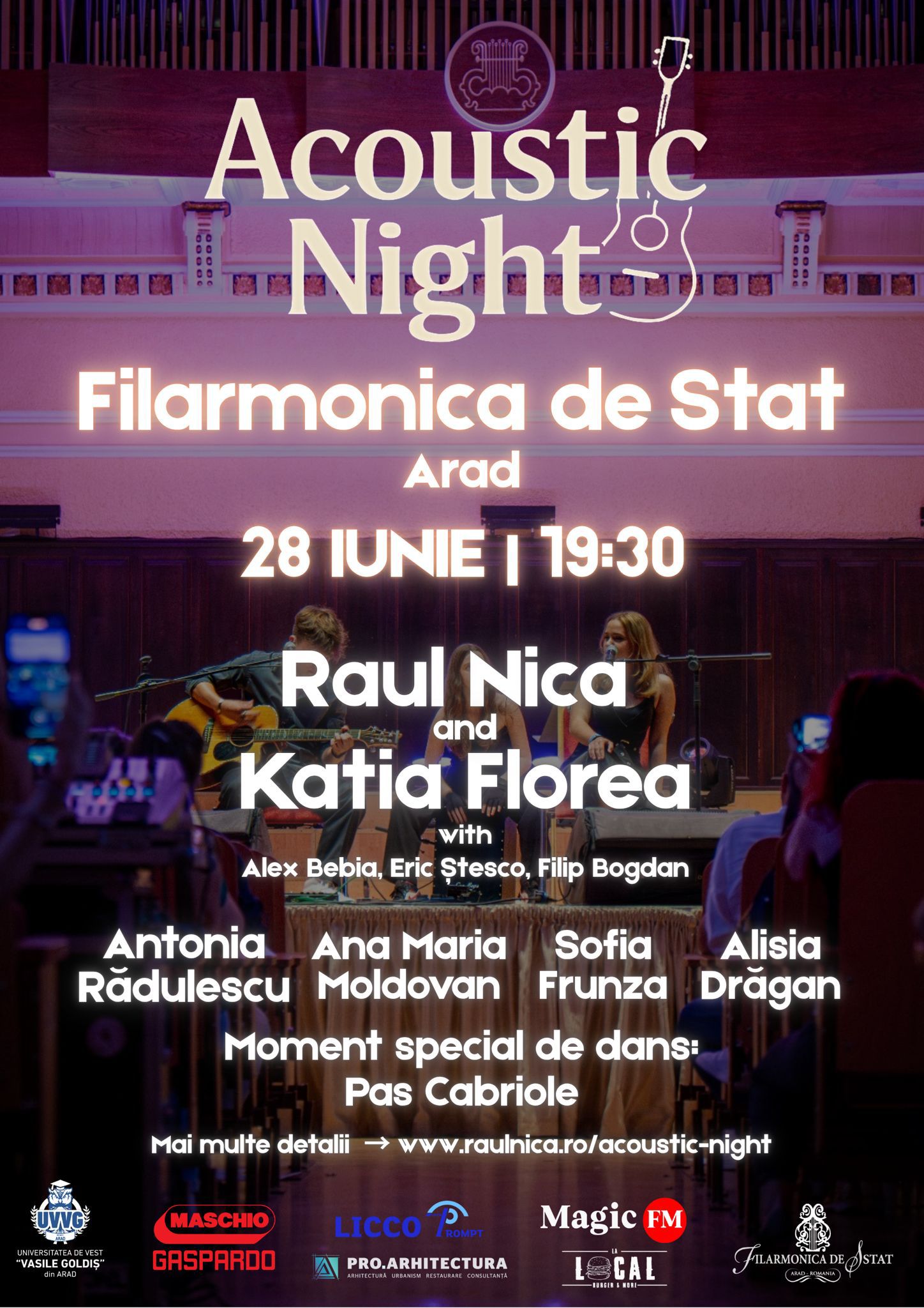 Vor fi invitați și Alisia Drăgan, Sofia Frunza, Ana Maria Moldovan și Antonia Rădulescu, iar deschiderea serii va fi marcată de un moment de dans cu trupa Pas Cabriole. Timp de aproximativ două ore, arădenii se vor putea bucura de muzică bună, în fața unei scene care va crea un spațiu artistic autentic, atât de necesar pentru promovarea artiștilor locali.