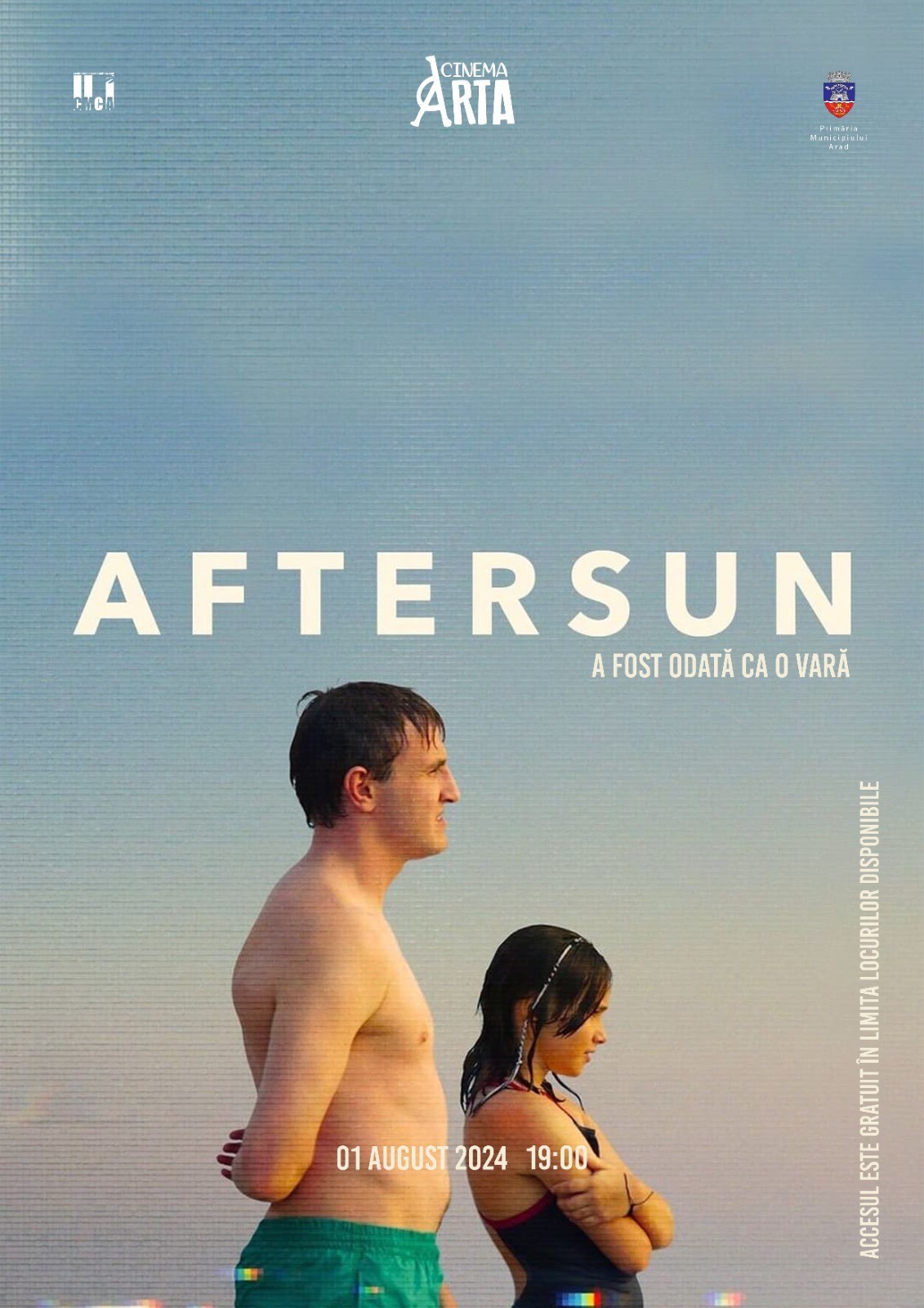 ARAD. Filmul „Aftersun: A fost odată ca o vară”/„Aftersun” (r. Charlotte Wells) care descrie o vacanță ca o punte vitală de emoție și căldură între tată și fiică, peste prăpastia tristeților și a neîmplinirilor, va fi proiectat la Cinematograful „Arta” din Arad. Proiecția va avea loc joi, 1 august 2024, de la ora 19.00, iar accesul publicului va fi gratuit, în limita locurilor disponibile.
