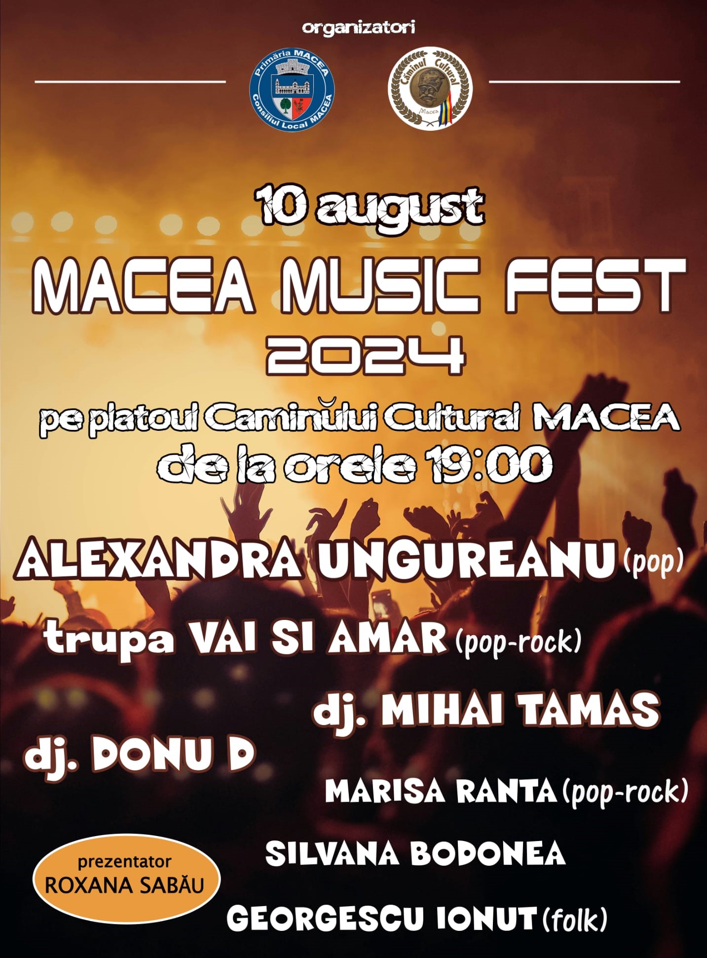 „Având susţinerea Consiliului Local Macea, reuşim să organizăm un festival cerut de tinerii din comună: Macea Music Fest. După o primă ediţie în 2019, a urmat doi ani de pauză forţată, pe perioada pandemiei de COVID, iar apoi am reluat tradiţia acestui festival pop–folk-rock. Vă aşteptăm în număr cât mai mare, sâmbătă, la Macea, să petrecem o seară de neuitat” – ne-a declarat Ciprian Otlăcan, primarul comunei Macea.