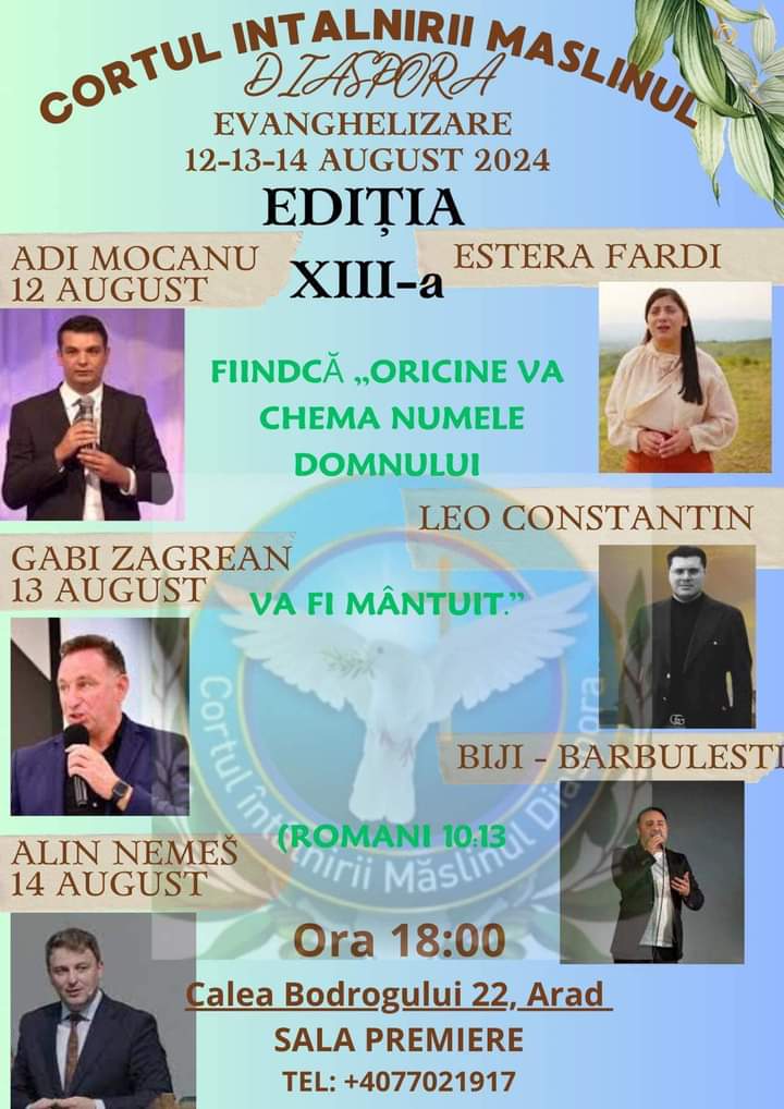 Programul fiecărei zile începe la ora 18, participanţii fiind aşteptaţi să asculte Evanghelia, să-I aducă slavă Lui Dumnezeu prin cântare şi să se unească prin rugăciune. Vor predica pastorii: Adi Mocanu (12 august), Gabi Zăgrean (13 august) şi Alin Nemeş (14 august). Vor intona cântări: Estera Fardi (12 august), Leo Constantin (13 august) şi Biji de la Bărbuleşti (14 august).