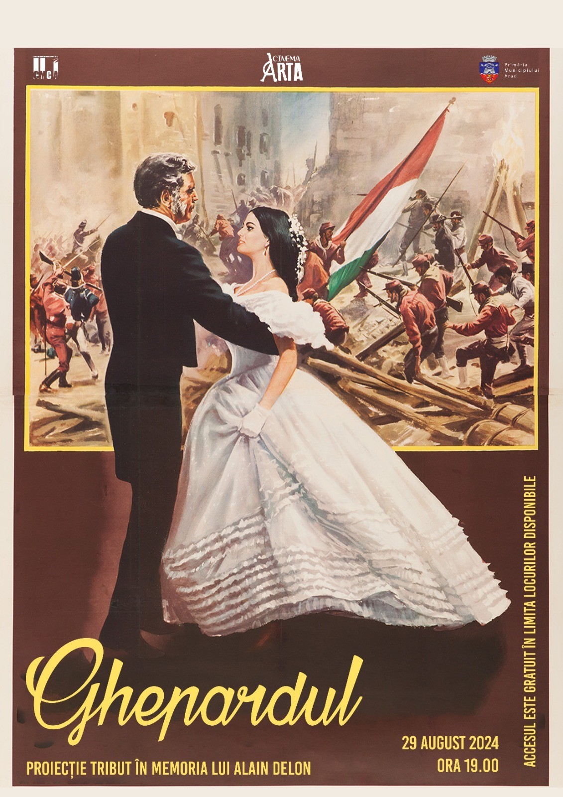 Ecranizare a romanului omonim al lui Giuseppe Tomasi di Lampedusa (publicat postum în 1958), filmul „Ghepardul”/„Il gattopardo” (r. Luchino Visconti), o capodoperă a cinematografiei mondiale, va fi proiectat la Cinematograful „Arta” din Arad, în semn de omagiu în memoria celui care a fost Alain Delon. Filmul, care prezintă declinul unei familii de nobili sicilieni în timpul mişcării de unificare a Italiei (il Risorgimento) de la mijlocul secolului al XIX-lea, va putea fi văzut joi, 29 august 2024, de la ora 19.00. Accesul publicului este gratuit, în limita locurilor disponibile.