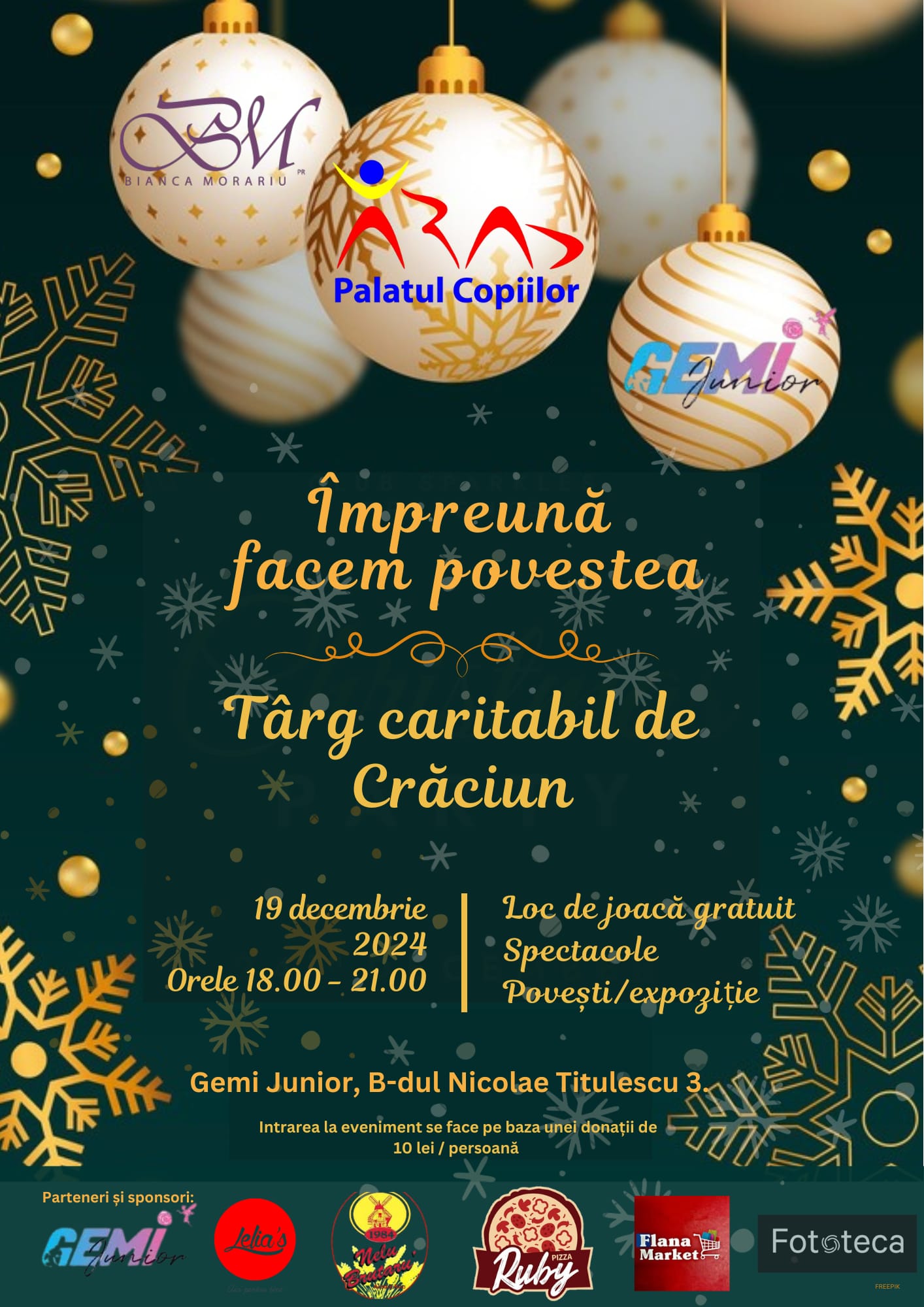 ARAD. „Împreună facem povestea” este târgul caritabil pe care Palatul Copiilor Arad îl organizează în acest an. Pe 19 decembrie, la Gemi Junior – pe Bld. Nicolae Titulescu, nr. 3, de la ora 18:00 și până la ora 21:00, toți arădenii care doresc să descoperiți frumusețea și povestea Palatului Copiilor Arad o pot face participând la acest eveniment cu totul special. Copiii vor avea acces gratuit la locul de joacă. De asemenea vor fi organizate ateliere de artizanat local și produse handamde inspirate de istoria și farmecul Palatului Copiilor Arad, vor fi prezentate bunătăți tradiționale și surprize culinare de neratat. Mai mult, atmosfera de basm va fi întregită cu momente artistice „Scopul nostru este de a pune în valoare Palatul Copiilor Arad și de a aduce comunitatea împreună pentru a susține acest obiectiv. Toate fondurile strânse vor fi folosite pentru materiale necesare desfășurării activității, la cercuri. Vino alături de noi și contribuie la o inițiativă care păstrează istoria vie și o transmite mai departe!”, spun cei de la Palatul Copiilor Arad.
