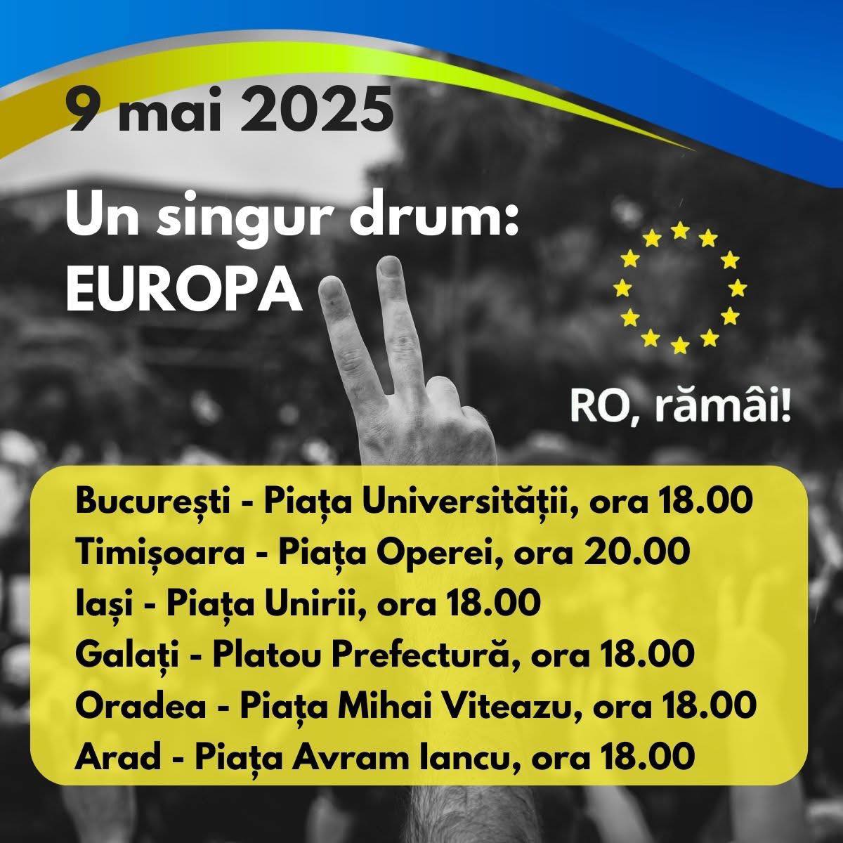 „Turul doi. Alegerea e clară. România merge înainte – sau se întoarce în trecut. Pe 9 mai, de Ziua Europei, ne adunăm în Piața Avram Iancu din Arad. Nu pentru nostalgii. Nu pentru lozinci. Ci pentru a spune răspicat că ne pasă. Și că votăm. Pro-democrație. Pro-Europa. România are în față o răscruce. Un drum duce spre valori europene, justiție, libertăți și respect. Celălalt spre autoritarism, control, și frică. Alegerea nu e între două persoane. E între două viziuni de țară. Ieșim în stradă pentru că nu acceptăm o Românie în care drepturile devin favoruri și vocile incomode sunt reduse la tăcere. Ieșim pentru că vrem spitale funcționale, educație solidă, instituții curate. Ieșim pentru că nu vrem să decidem viitorul stând pe margine. E despre direcție. E despre viitor. E despre vot. Vino în Piața Avram Iancu din Arad. Adu-ți prietenii. Adu-ți energia. Adu-ți vocea. Ne vedem vineri, 9 mai, la ora 18:00. Nu stăm. Nu tăcem. Nu cedăm. Alegem Europa” – se arată în descrierea evenimentului organizat de Aradul Civic.