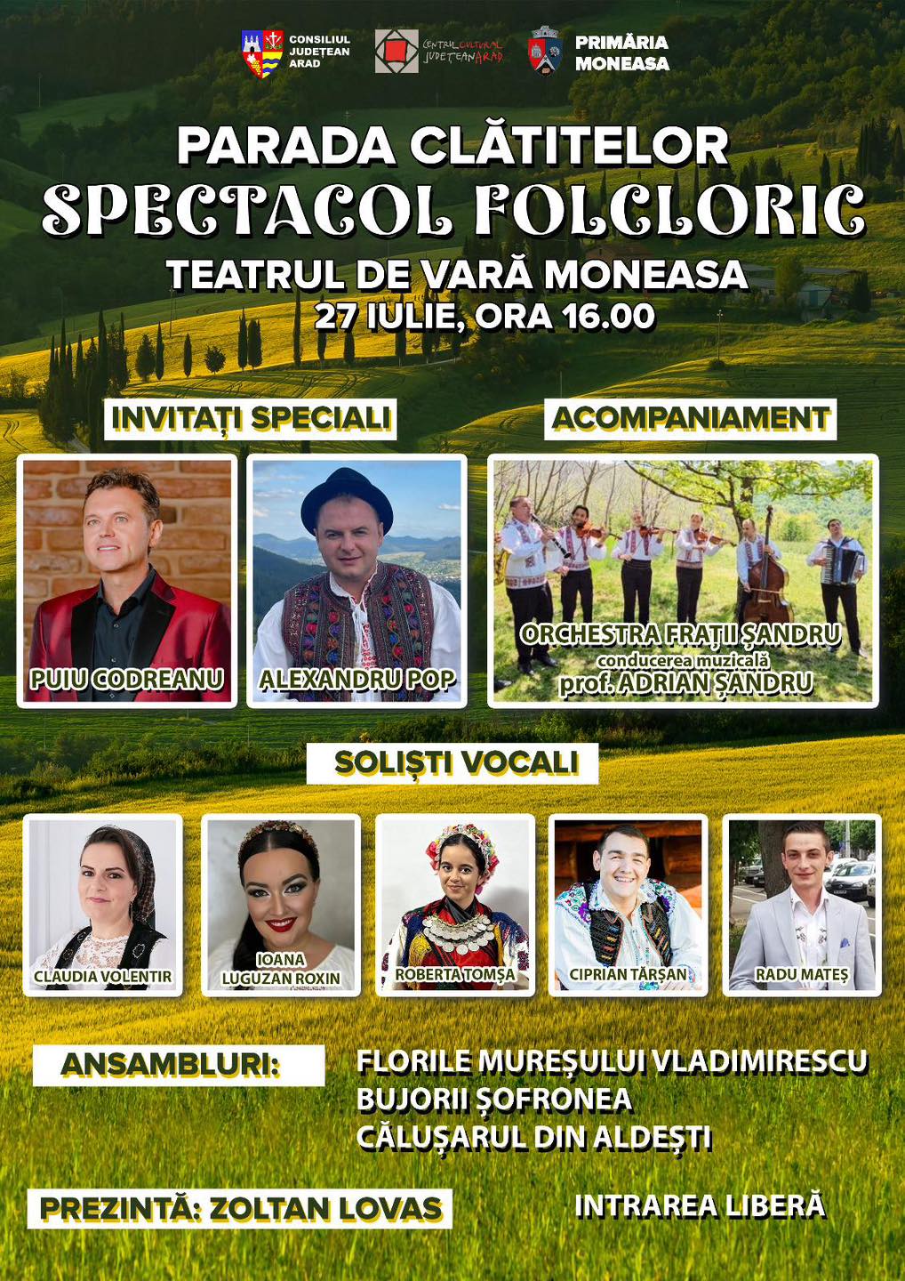 „Anul acesta, vor fi zeci de sortimente de clătite. Pe scena Teatrului de Vară din stațiune, modernizată de Consiliul Județean, vor avea loc concerte de muzică ușoară și populară. Sâmbătă, de la ora 19:00, sunt programate concerte susținute de Sanda Ladoși și Alexandru Anghel. Duminică, 27 iulie 2025, vor urca pe scenă, începând cu ora 16:00, îndrăgiți artiști de muzică populară din vestul țării și ansambluri de dansuri populare din județ: Puiu Codreanu, Alexandru Pop, Orchestra Fraţii Şandru, Claudia Volentir, Ioana Luguzan Roxin, Roberta Tomşa, Ciprian Tarşan, Radu Mateş. Vor mai evolua ansamblurile Florile Mureșului Vladimirescu, Bujorii Şofronea, Căluşarul (Aldeşti)”, anunță cei de la CJA.